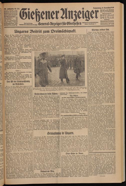 Ungarn tritt dem am 37. September 1940 in Berlin unterzeichneten Dreimächtepakt zwischen Deutschland, Italien und Japan bei.