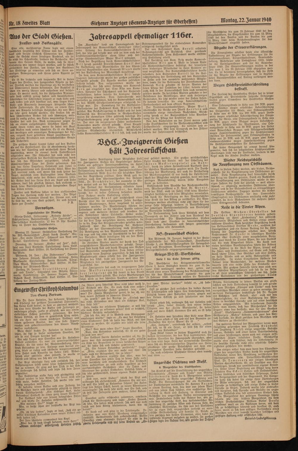 nicht mehr, dachte Halmfen. Ich Mkde jeyr ^Er°beMtN°in-n'Kaffee und eine Zeitung ba- ein Weilchen darin und murmelte platzlich^n fchem- barem Selbstgespräch: „Em t ch 9 Weltteil!" Kolumbus! Entdeckt da einen Sanz neuen BZ me