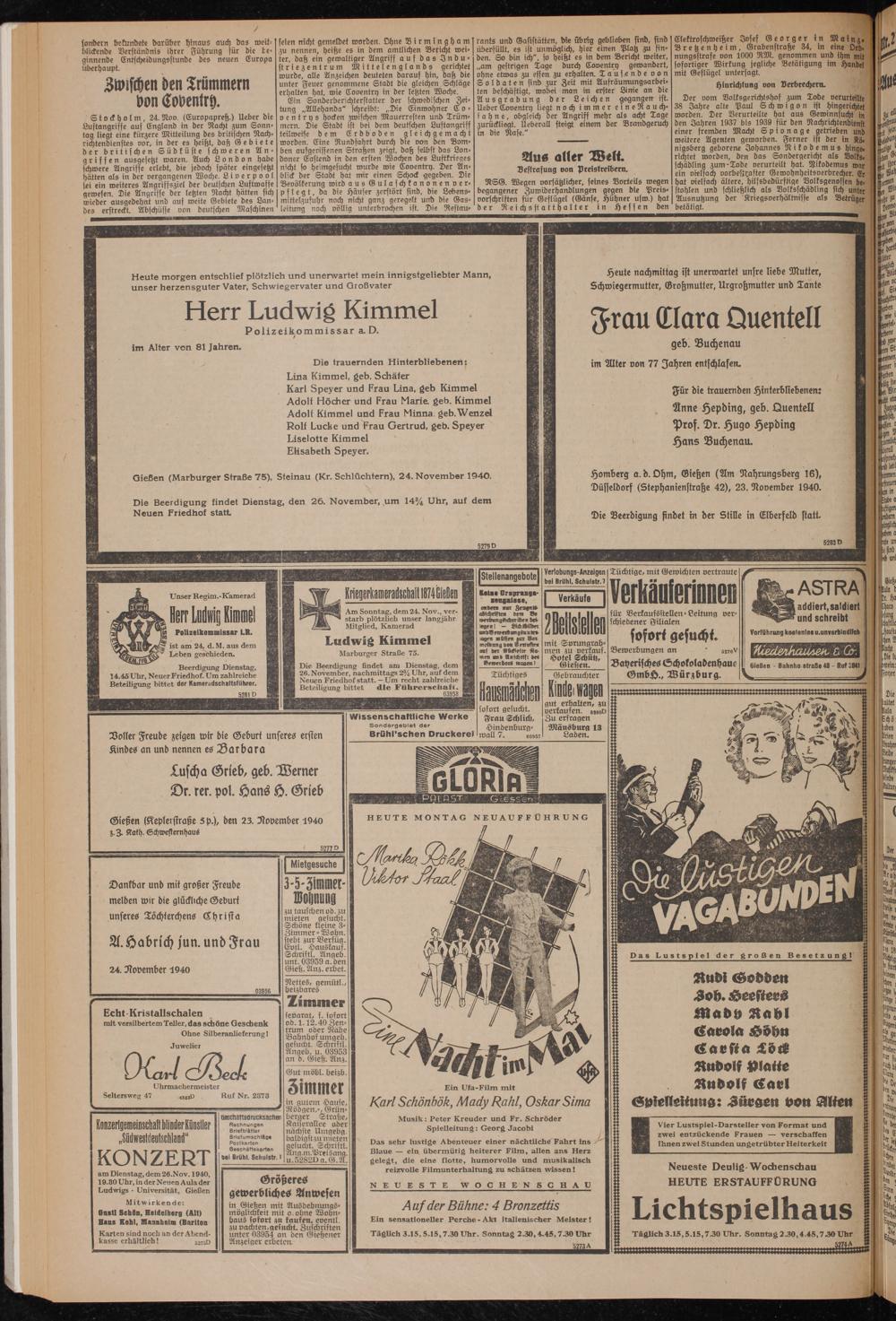 Gießen (Marburger Straße 75), Steinau (Kr. Schlüchtern), 24. November 1940.