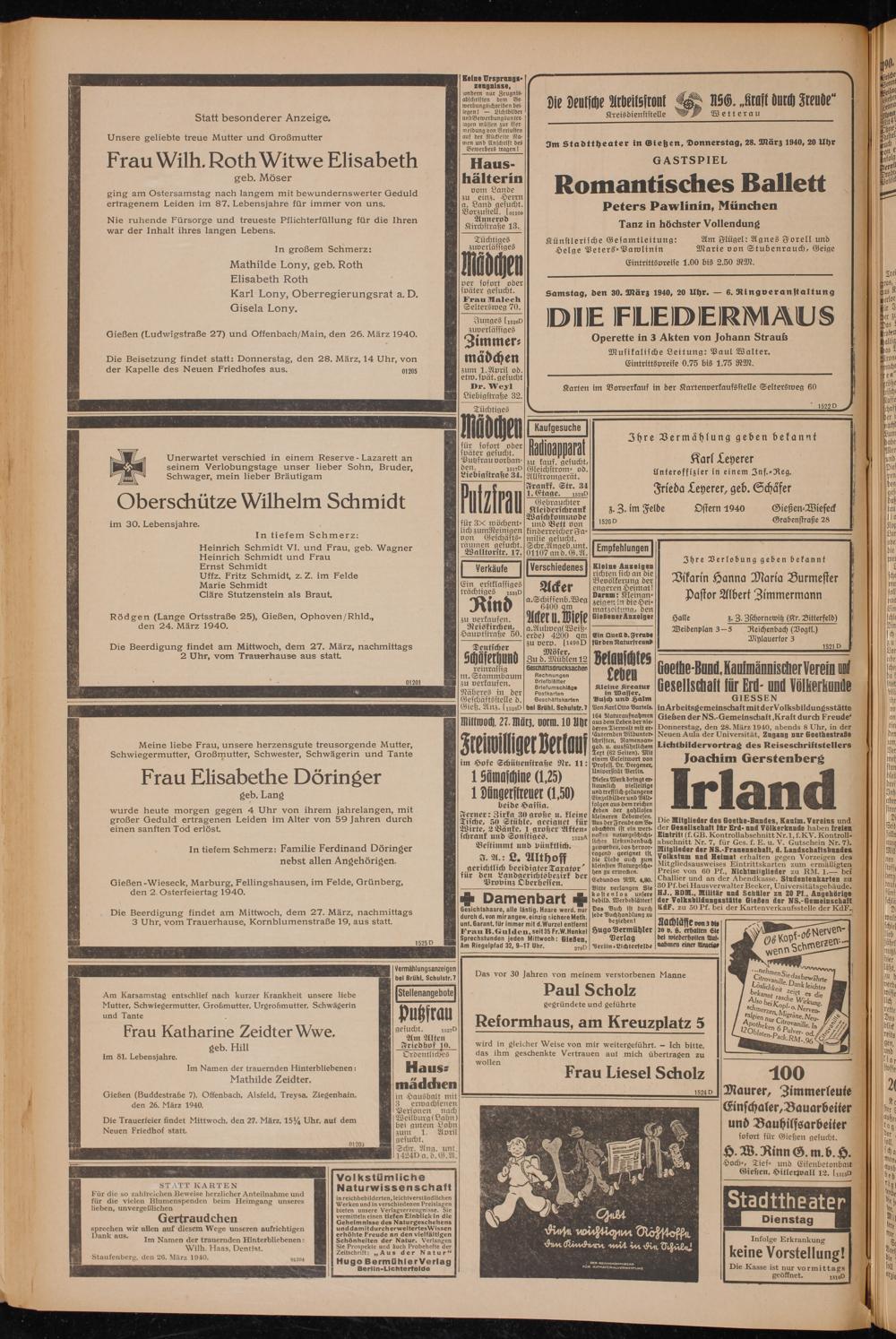 3m Sladtlheater in Giehen, Donnerstag, 28. Mürz 1940, 20 Uhr