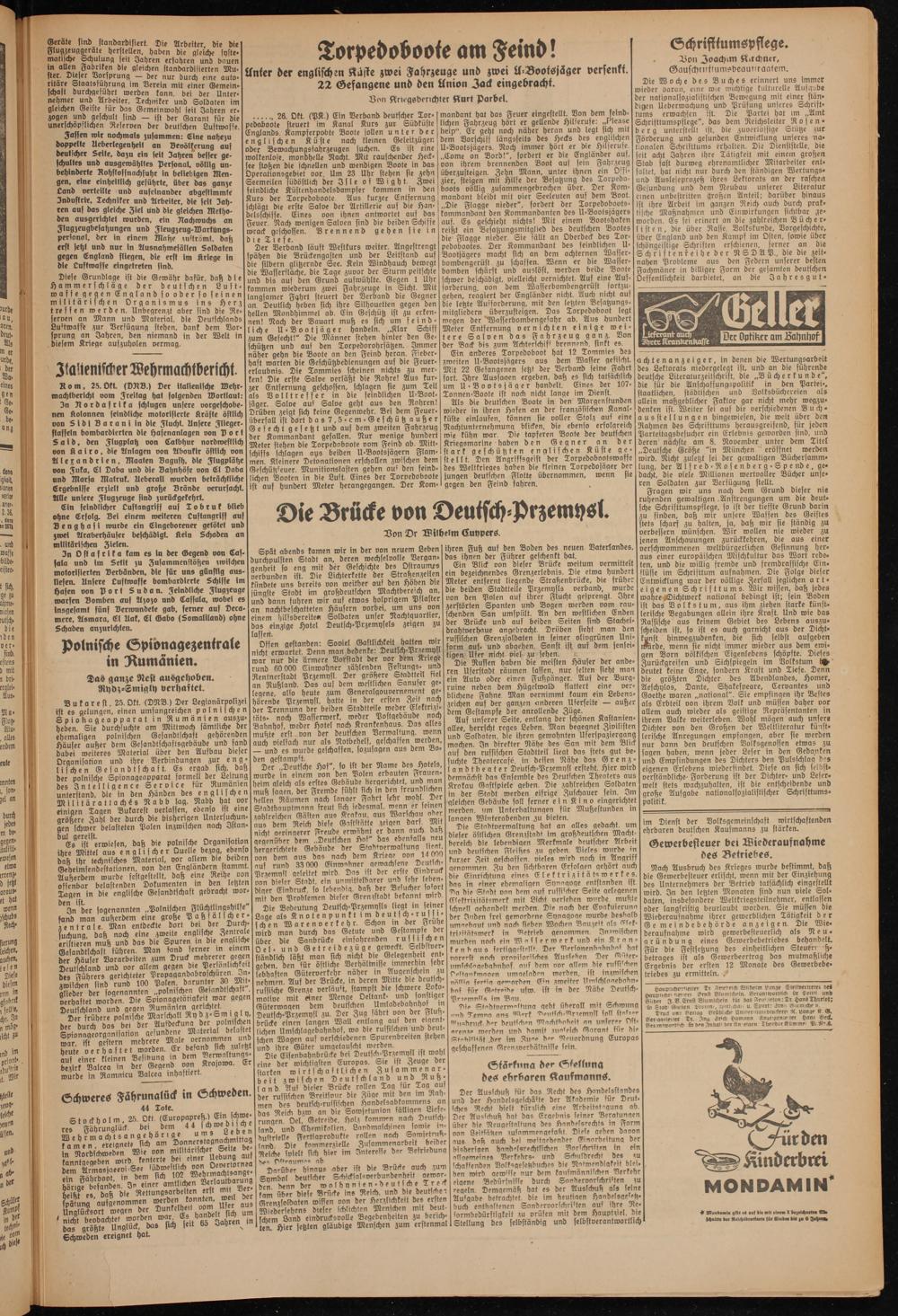 ....., 26. Oft. (PK.) Ein Verband deutscher Torpedoboote steuert im Kanal Kurs zur Südküste Englands. Xampferpobte Boote sollen unter der englischen K ü st e nach kleinen Geleitzüger. oder Bewachungsfahrzeugen suchen. Es ist eine wolkenlose, mondhelle Nacht. Mit rauschender Hecksee stoßen die schnellen und wendigen Boote in das