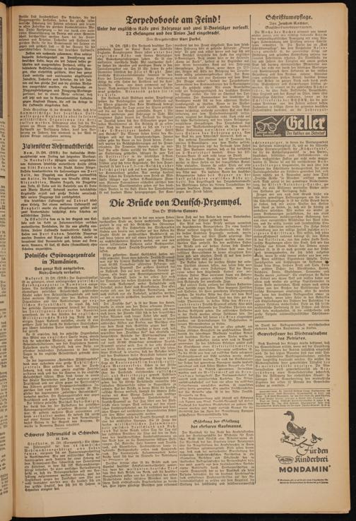 Auf unserer Seite, entlang ber schönen Kastanien- alles, herrscht reges Leben. Man begeanet Zivilisten unb Solbaten, bie ihren gewohnten Userspaziergang machen. In direkter Nähe des San mit dem Blick auf ben russischen Stabtteil liegt bas stets gut besuchte Theatercafe, in besten Nähe bas Grenz- Ian b tb e a t e r Deutsch-Przernysl ersteht. Hier wirb demnächst das Ensemble des Deutschen Theaters aus Krakau Gastspiele geben. Die zahlreichen Soldaten in der Stadt werden eifrige Zuschauer sein. Im gleichen Gebäude sott ferner ein Kino eingerichtet werden, um Unterhaltungen für Mußestunden in