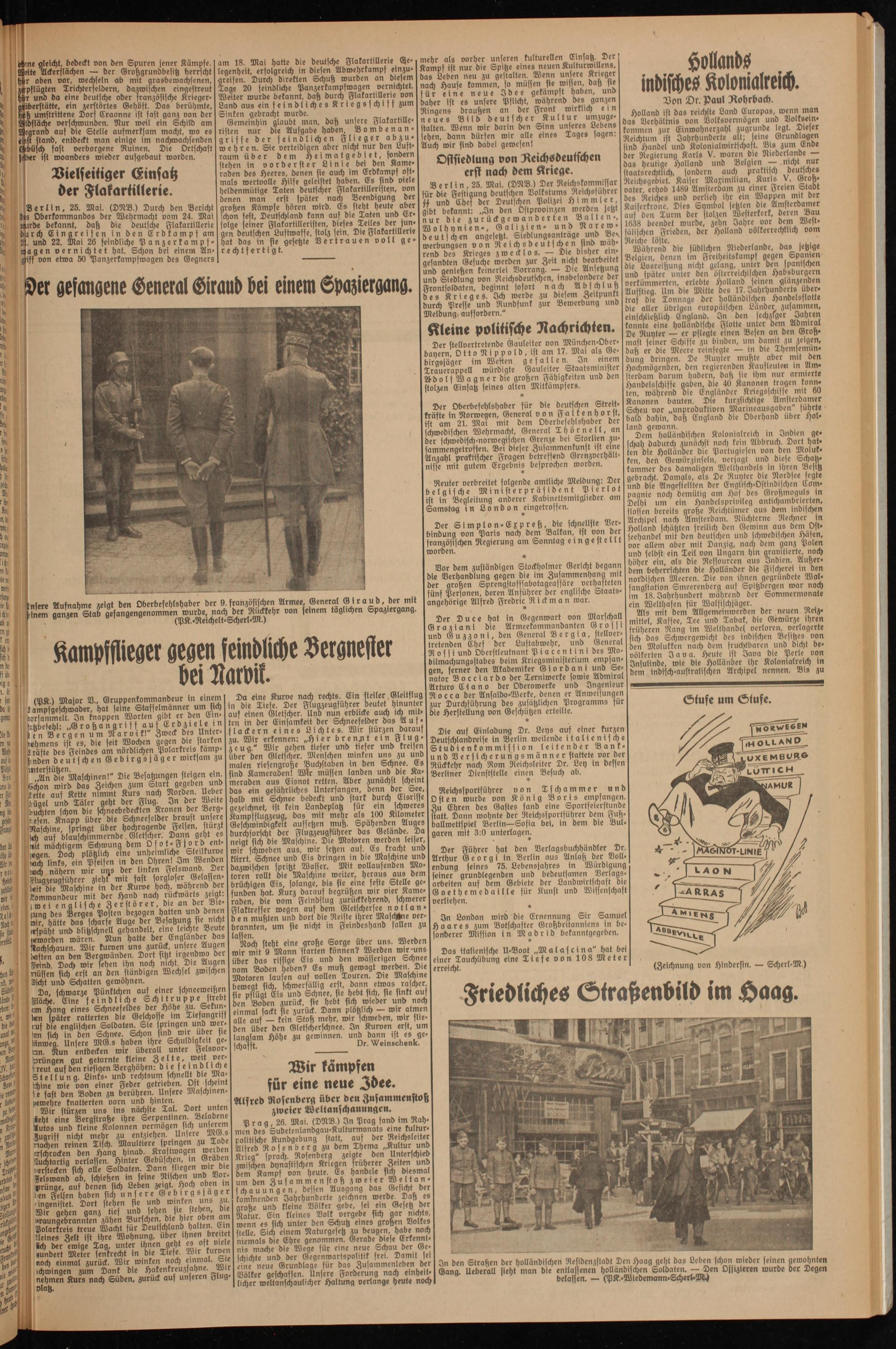 d z Oberkommandos der Wehrmacht vom 24. Mai wurde bekannt, daß die deutsche Flakartillerie durch Eingreifen in den Erdkampf am 21. und 22. Mai 26 feindliche Panzerkampfwagen vernichtet hat. Schon bei einem An- Kiff von etwa 50 Panzerkampfwagen des Gegners