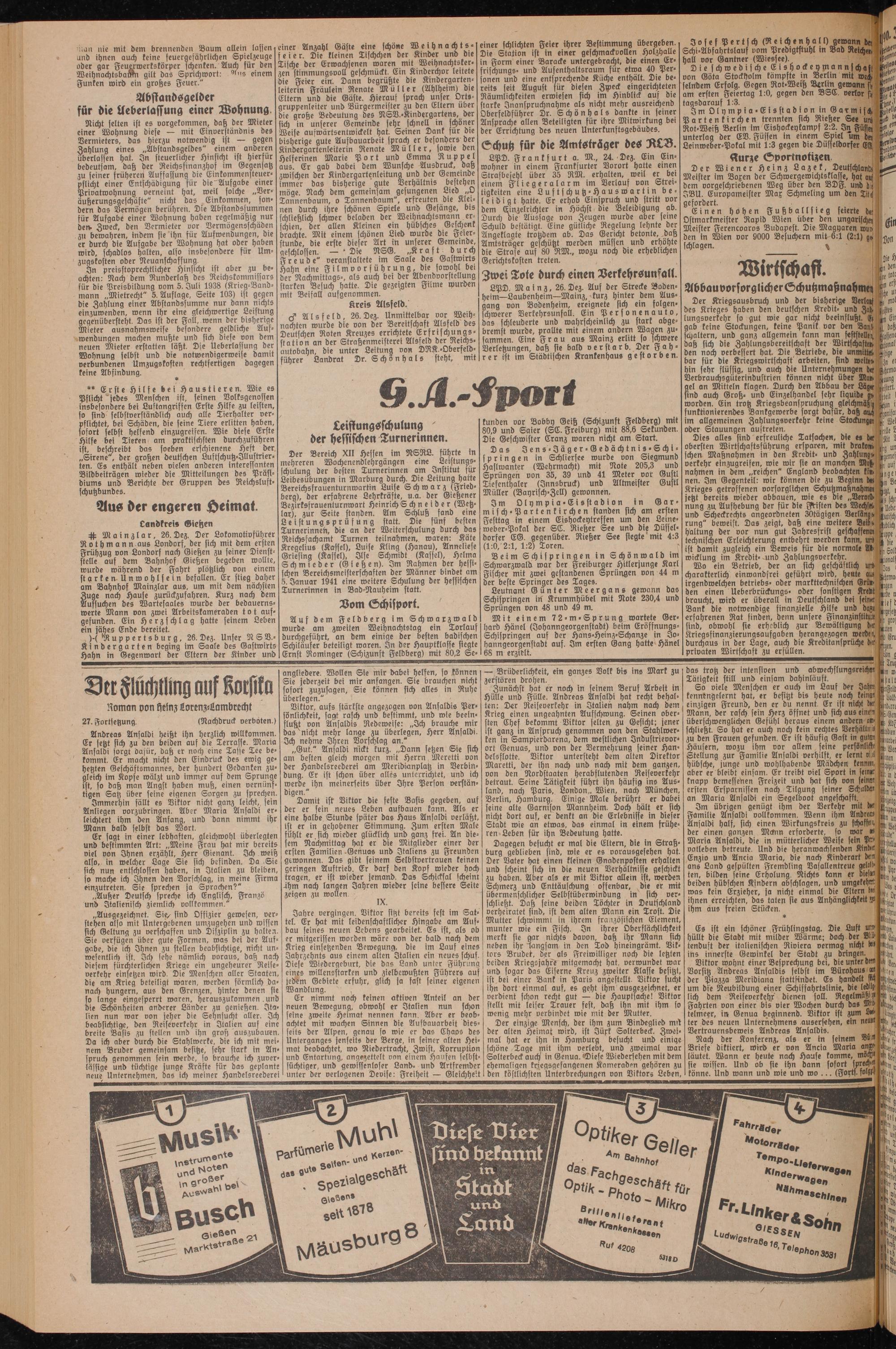 Auf dem Feldberg im Schwarzwald wurde am zweiten Weihnachtstag ein Torlauf durchgeführt, an dem einige der besten badischen Schiläufer beteiligt waren. In der Hauptklafse siegte Ernst Rominger (Schizunft Feldberg) mit 80,2 Se-
