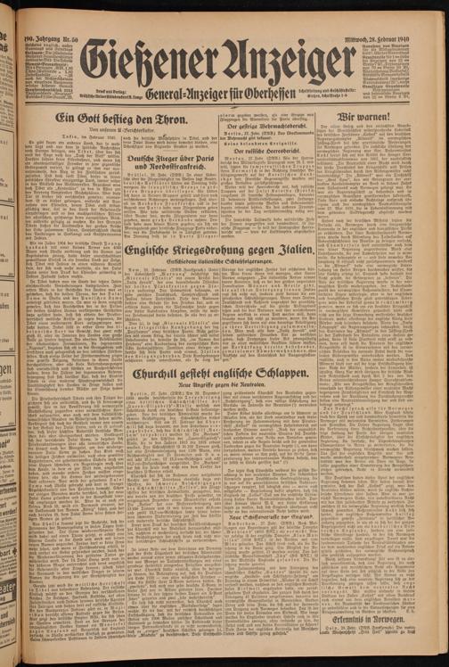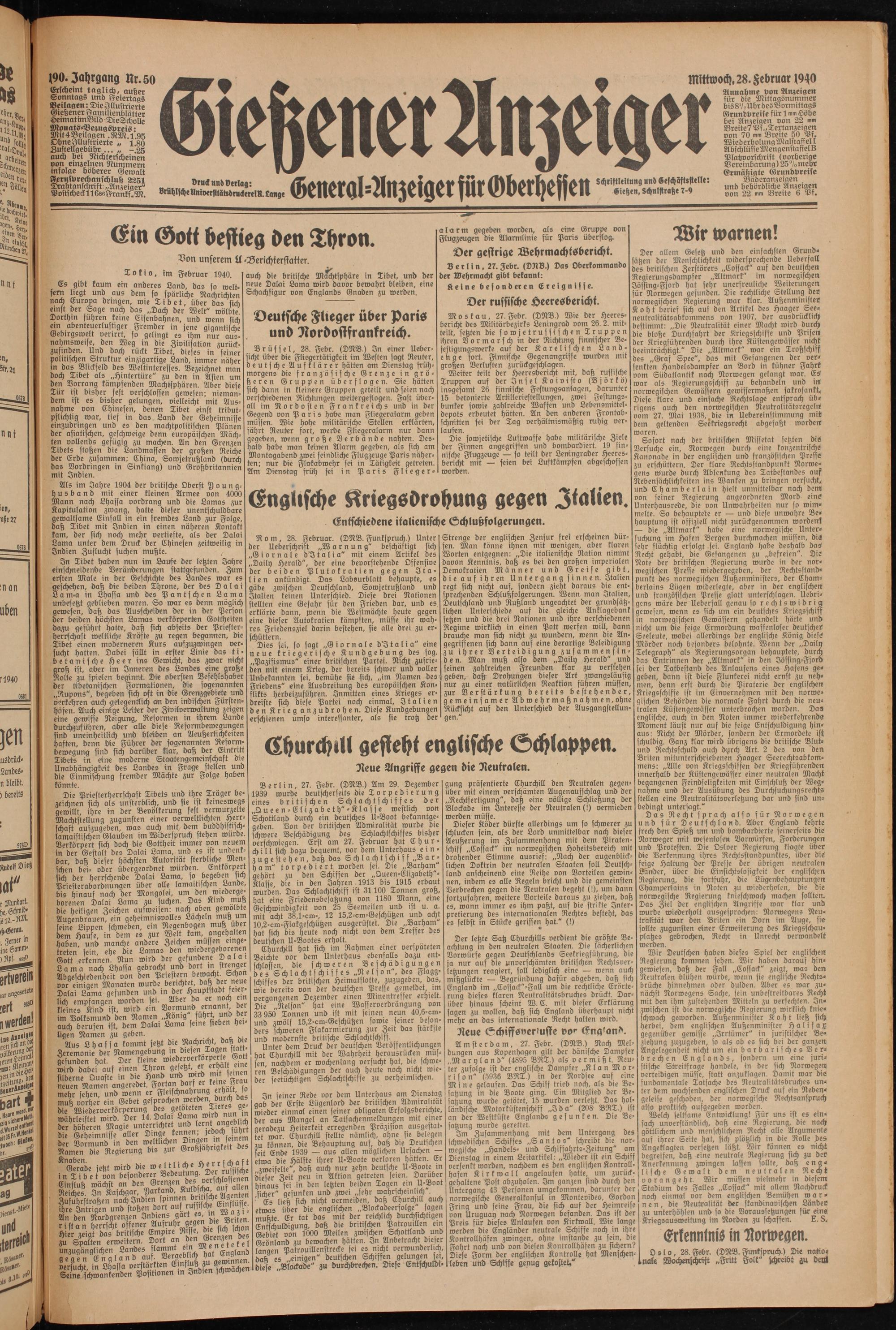 I9V. Jahrgang Nr. so « Mittwoch, 28. Februar 1940