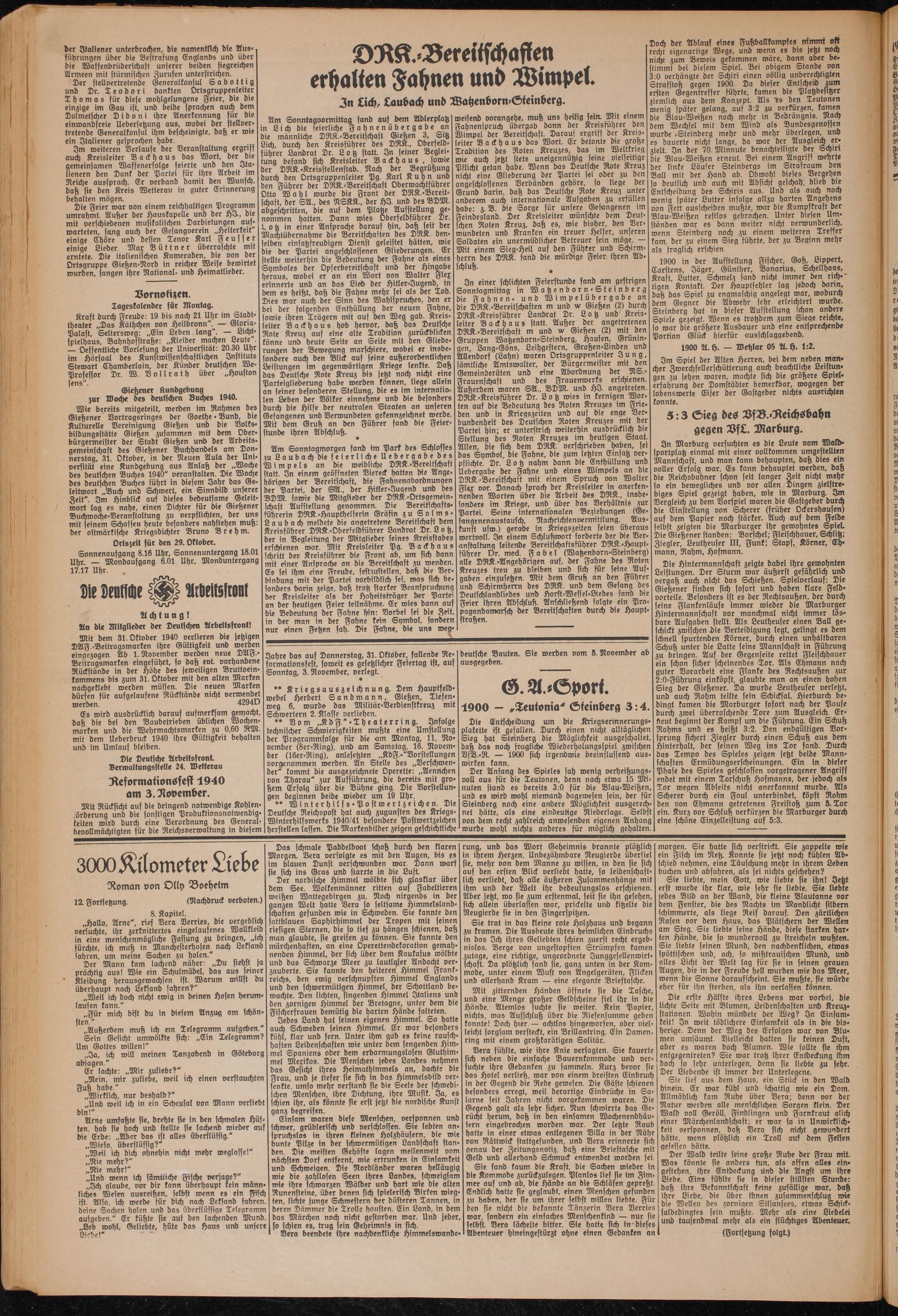 Die Deutsche Arbeitsfront. Verwaltungsstelle 24. Wetterau Reformationsfest 1940 am 3. November.