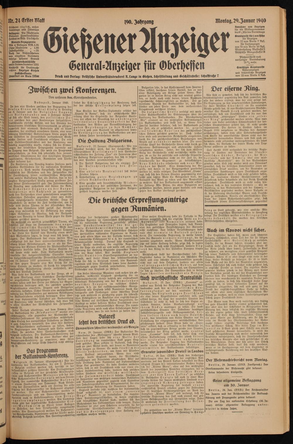 Montag, 29.Januar 1940