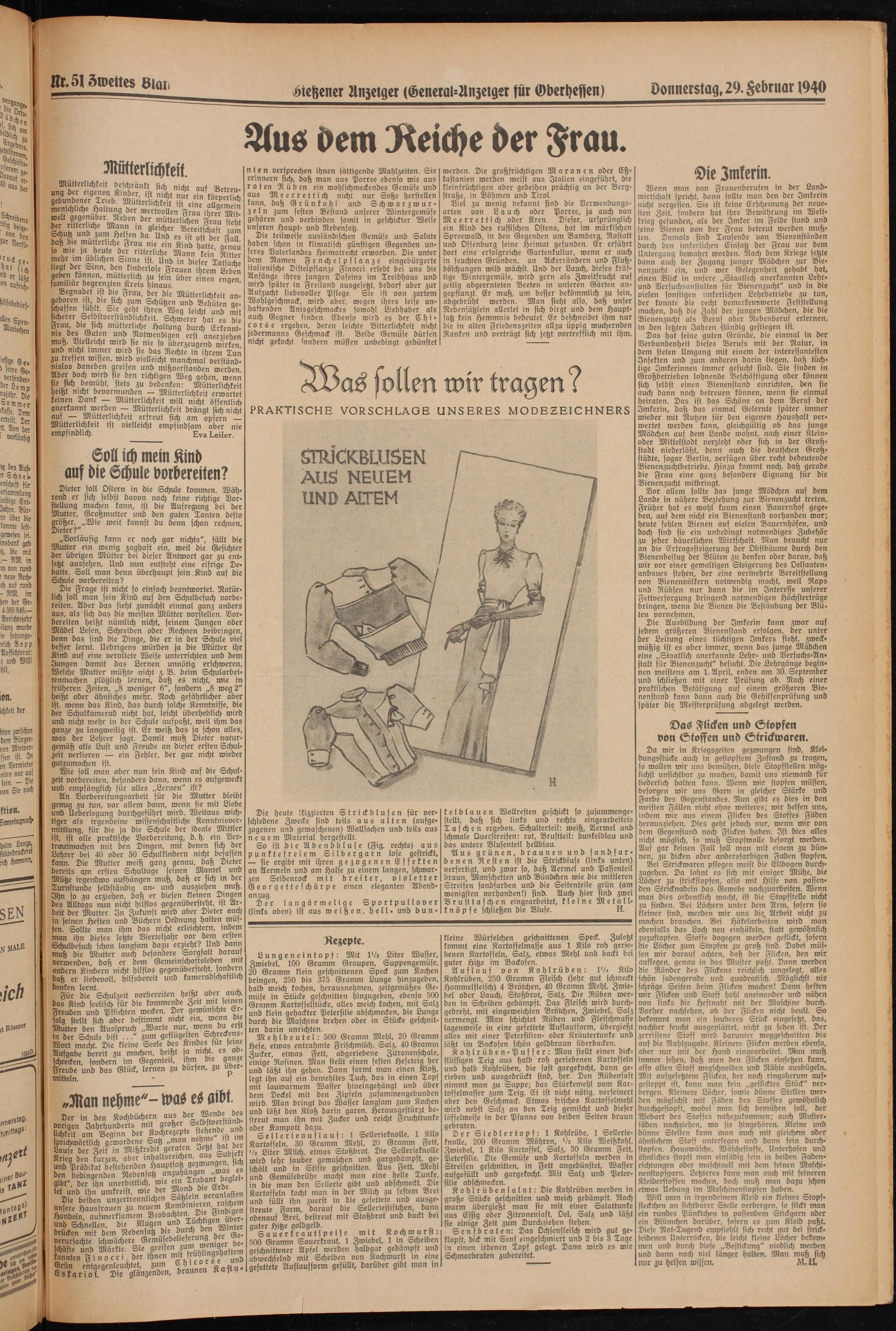 Donnerstag, 29. Hebruar 1940