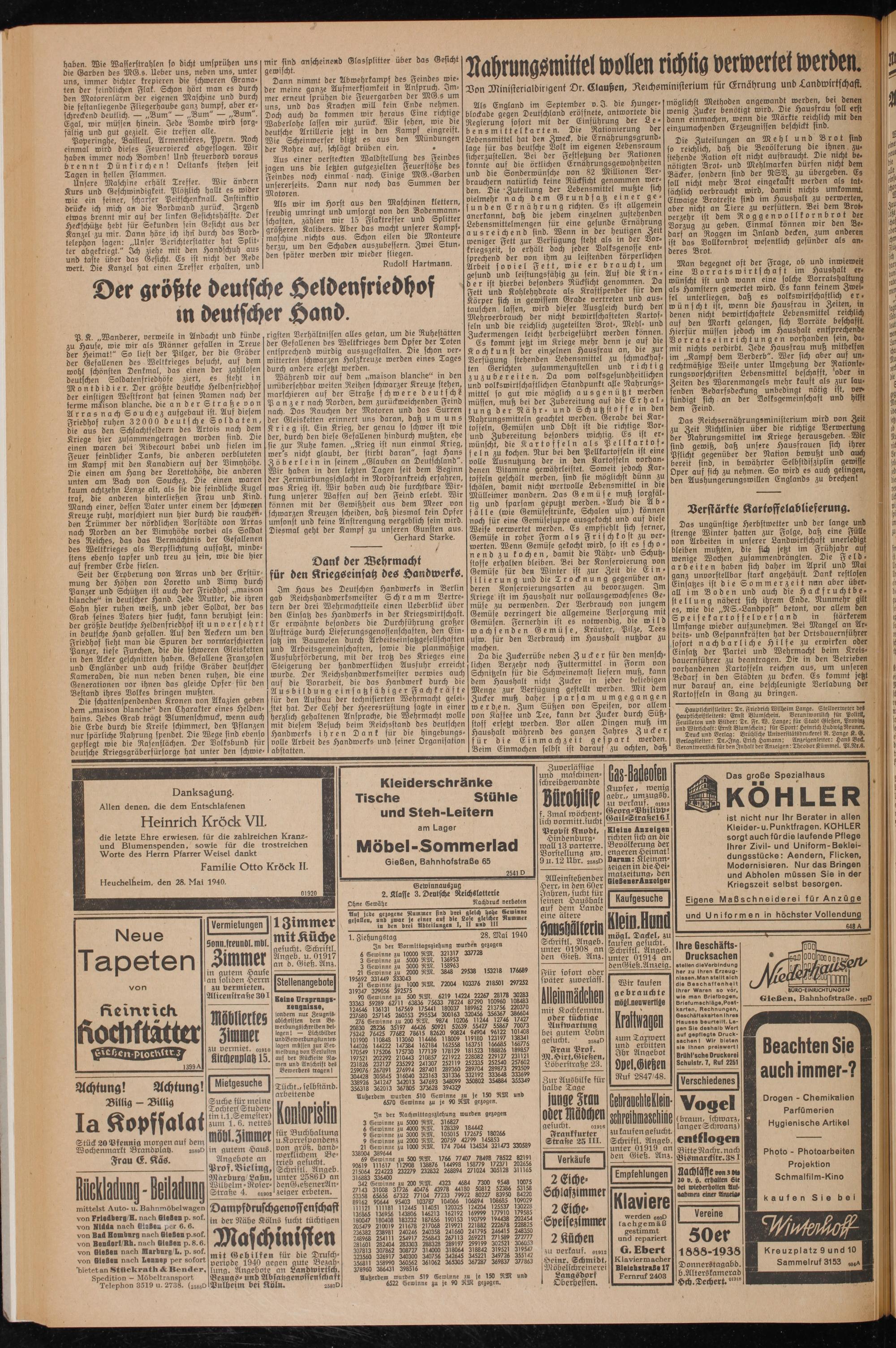 1. Ziehungstag 28. Mai 1940