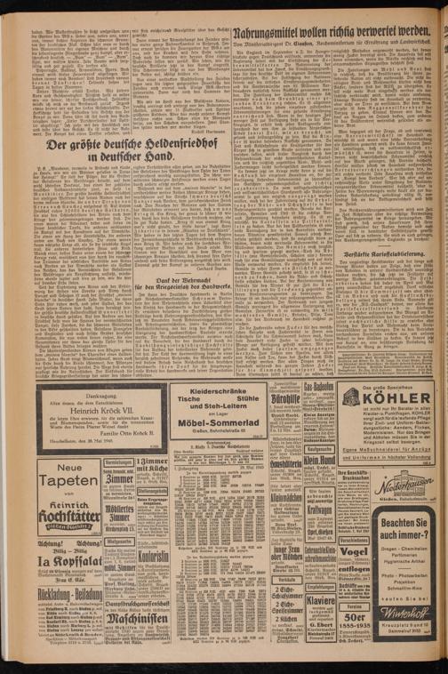 Seit der Eroberung von Arras und der Erstürmung der Höhen von Loretto und Vimy durch Panzer und Schützen ist auch der Friedhof „maison blanche“ in deutscher Hand. Jede Mutter, die ihren Sohn hier ruhen weiß, und jeder Soldat, der das Grab seines Vaters hier sucht, kann beruhigt sein: der gröfelß deutsche Heldenfriedhof ist unversehrt in deutsche Hand gefallen. Auf den Aeckern um den Friedhof sieht man die Spuren der vorm/arschierten Panzer, tiefe Furchen, die die schweren Gleisketten in den Acker geschnitten haben. Gefallene Franzosen und Engländer und auch frische Gräber deutscher Kameraden, die nun neben denen ruhen, die eine Generationen vor ihnen das gleiche Opfer für den Bestand ihres Volkes bringen mußten.