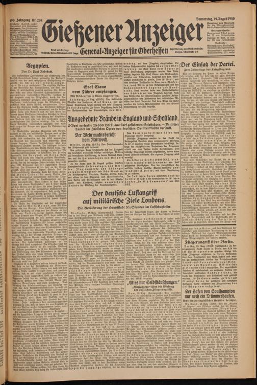 hätten nur kurzeBeine, und das Vertrauen der englischen und italienischen Bevölkerung in die unbedingte Wahrheit der eigenen Wehrmachtsberichte könne durch die Erfolglosigkeit der nächtlichen englischen Fliegerangriffe nur bestärkt werden.