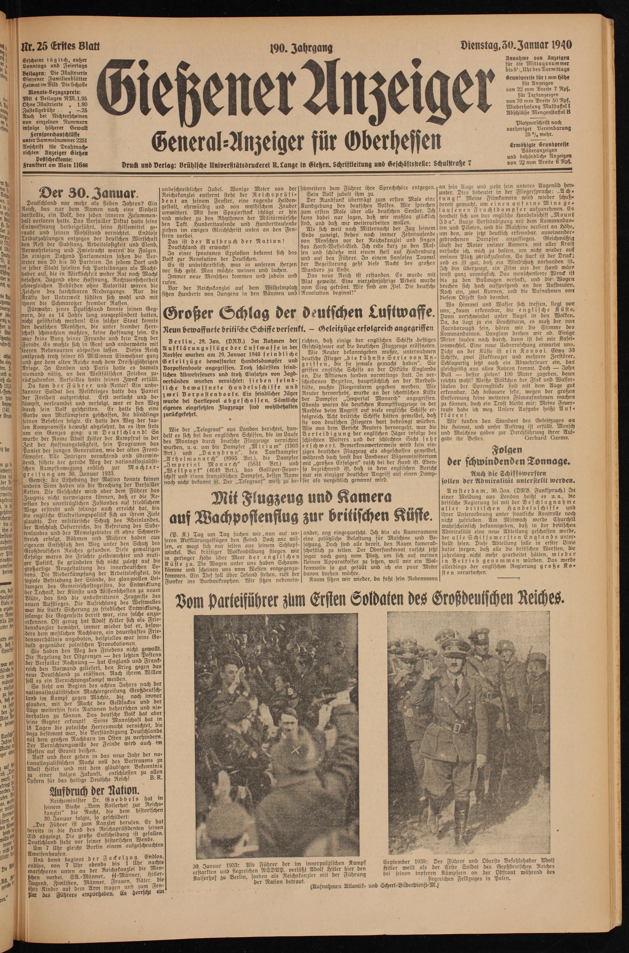Dienstag, 30 Januar 1940