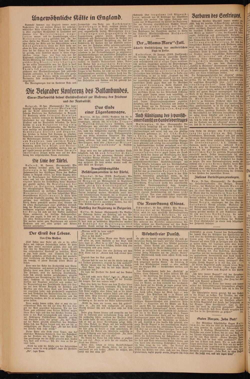 Belgrad, 30.Ian. (Europapreß.) Der jugoslawische Außenminister Cincar-Markowitsch gab der Presse Informationen über die bevorstehende Konferenz des Balkanbundes in Belgrad. Die Konferenz werde keinerlei Sensation bringen, sondern nochmals die Solidarität und Entschlossenheit der vier Staaten zur Wahrung des Friedens und der Neutralität bekunden. In dieser Hinsicht sei auch Bulgarien völlig einig mit den Staaten des Balkanbundes. Der Balkanbund verfolge mit Sympathie und Vertrauen d i e Bemühungen Italiens und Ungarns, den Frieden in diesem Teil Europas zu erhalten. Besonders vertrauensvoll verfolge der Balkanbund die Bestrebungen Italiens, zwischen Ungarn und Rumänien, sowie zwischen Rumänien und Bulgarien zu vermitteln. Auf der Konferenz würde kein Block- und Verteidigungsbündnis geschloßen werden, das ge- aen irgend jemand gerichtet sein könnte. Den wirtschaftlichen Fragen werde man auf der Konferenz den entsprechenden Raum einräumen.