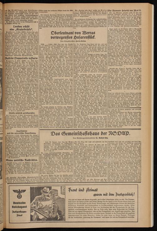 Was auf sozialem Gebiete geschieht, geschieht auf dem Gebiete der Erziehung, der Kultur, der Wirtschaft, des Nährstandes usw. Alle verantwortlichen Führer arbeiten und planen mit höchster Intensität und Verantwortung, um nach dem Endsieg vorbereitet zu sein, um mit aller Kraft das zu Der- wirklichen, was der Nationalsozialismus immet wieder gepredigt hat.