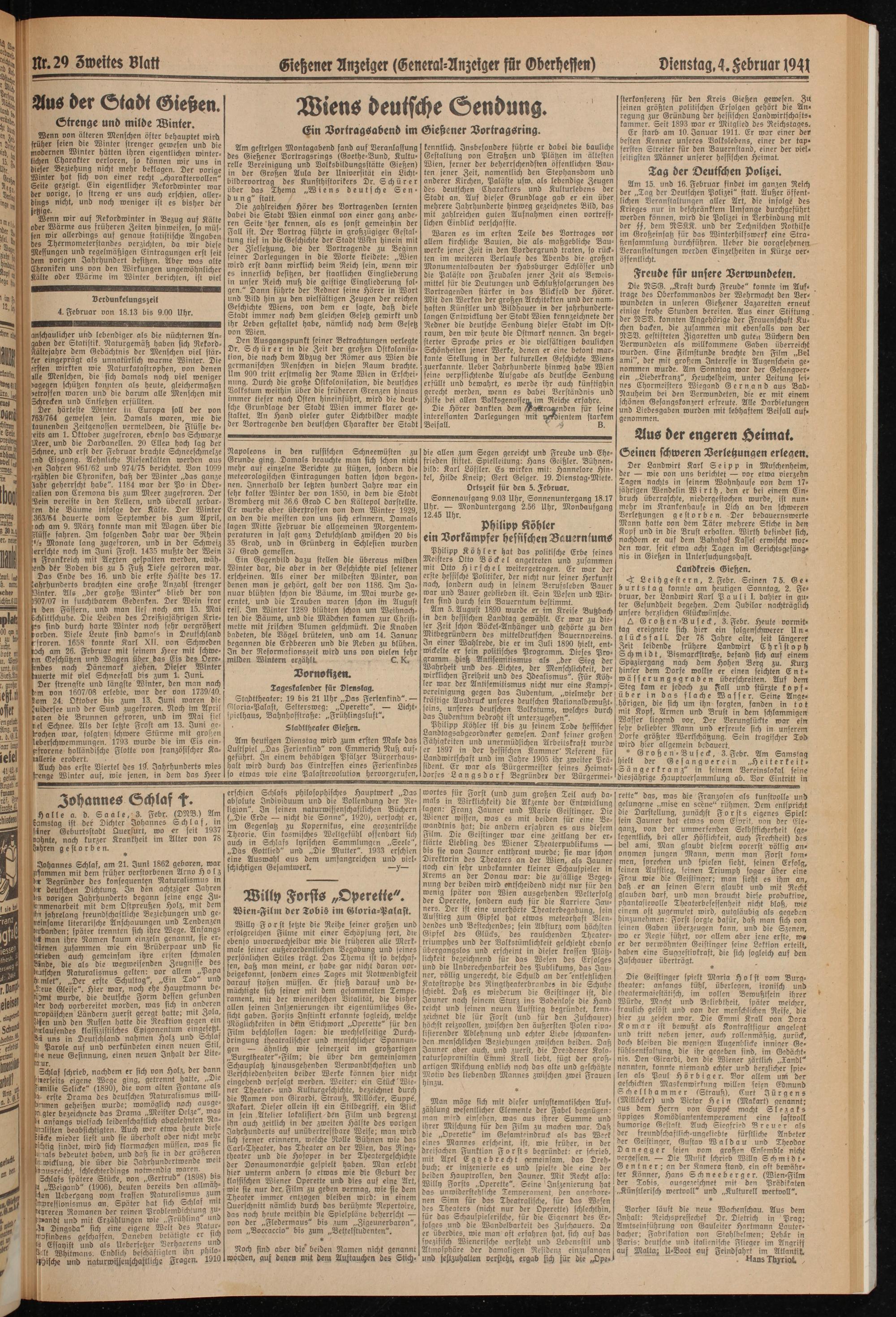 Gießener Anzeiger (General-Anzeiger für Gberhessen) Dienstag, 4. Hebruar 1941