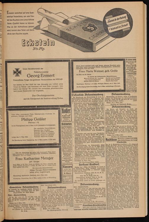 Münzenberg, Garbenteich, Gambach, den 4. März 1941.