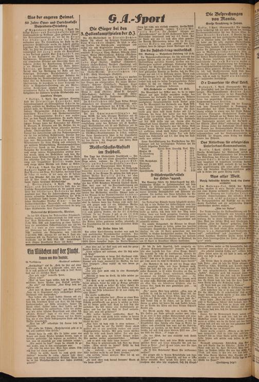 Die nächste Gelegenheit, ihr Können im Einzelkampf unter Beweis zu stellen, geben den sportlich veranlagten Jugendlichen die Bannwaldlaufmeisterschaften, die am 20. April gemeinsam mit dem RSRL. in Gießen durchgeführt werden. Die Bannmeisterschaften dienen der Ermittlung der Teilnehmer an den Gebietsmeisterscbaften im Waldlauf, die am 27. April in Frankfurt (Main) stattfinden.