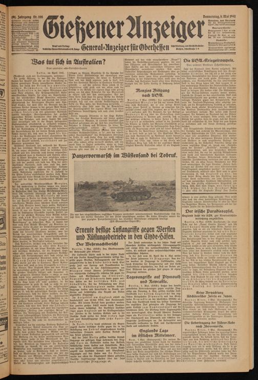 Auf der Insel Malta griffen deutsche Kampfflugzeuge am gestrigen Tage mehrmals den Flugplatz Luca an. Volltreffer trafen das Rollfeld. Abstellplätze sowie hallen und Unterkünfte. Mehrere heftige Brände entstanden. Bei einem Bacht- angriff von deutschen Kampf- und Sturzkampfflugzeugen auf den Hafen von La Valetta wurde vor allem die Staatswerft schwer getroffen. Deutsche Jagdflugzeuge schossen über der Insel drei britische Flugzeuge ab.