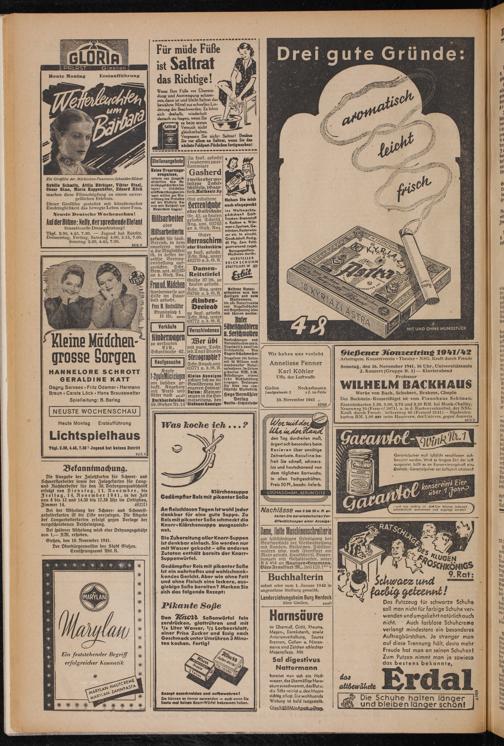 Der Bechstein-Konzertflügel ist vom Pianohaus Schönau. Eintrittskarten 1.50, 2.00, 2.75 und 3.50 RM. bei Musik-Challier, Neuenweg 10 (Fernruf 2671), u. in d. Kartenverkaufsst. der NSG. Kraft durch Freude, Seltersweg 60 (Fernruf 2141). - Studentenkarten RM. 1.00 nur beim Hausverw. derUnivers. gegen Ausweis