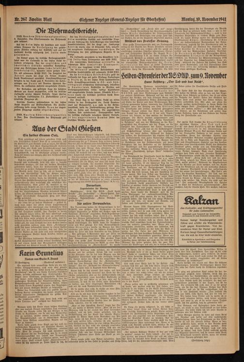 Nr. 267 Zweites Blatt Gießener Anzeiger (General-Anzeiger für Gberh essen)Montag, 10. November Ml