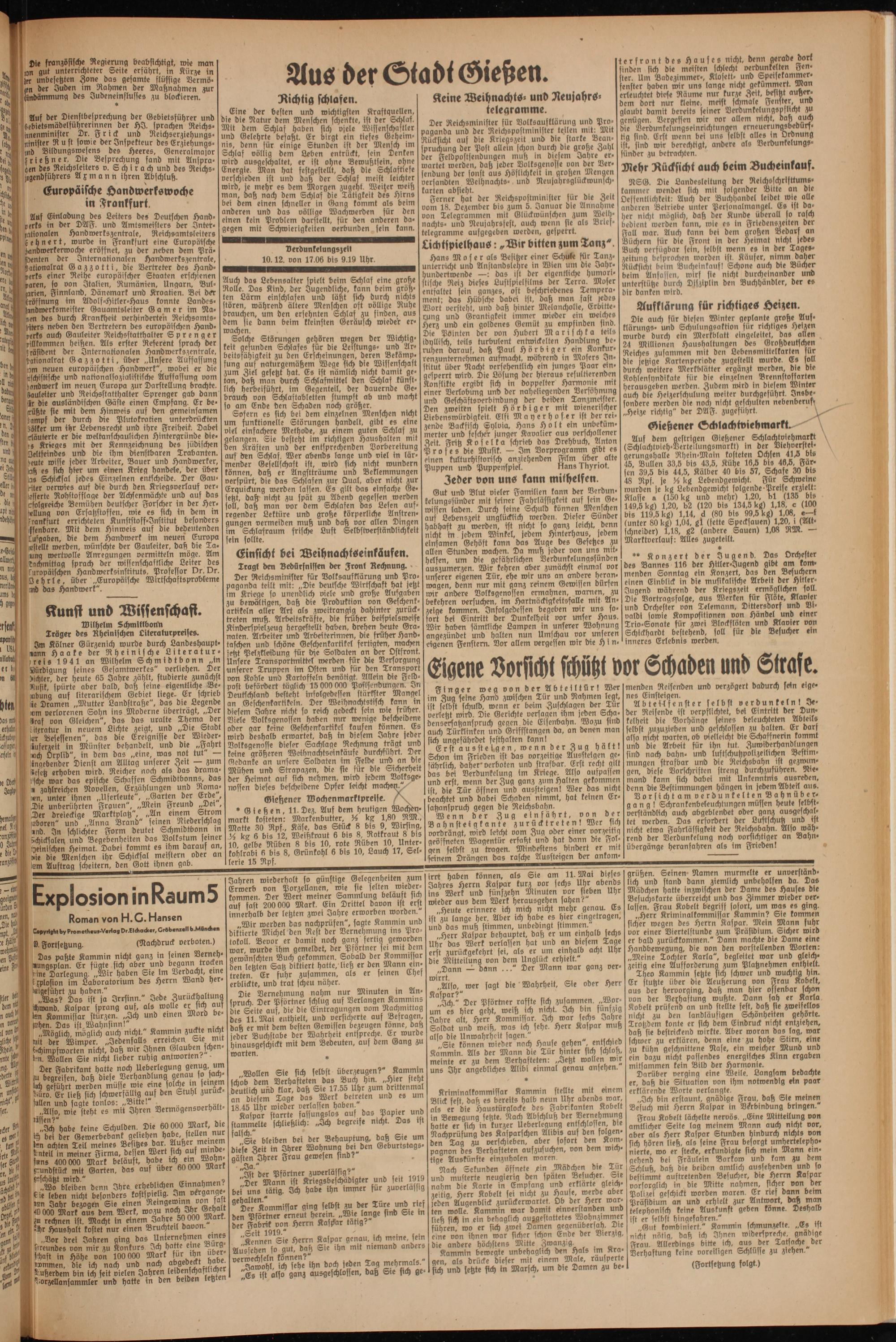 * Gießen, 11-Dez. Auf dem heutigen Wochbn- markt kosteten: Markenbutter, % kg 1,80 RM., Matte 30 Rpf., Käse, das Stück 8 bis 9, Wirsing, % kg 6 bis 12, Weißkraut 6 bis 8, Rotkraut 8 bis 10, gelbe Rüben 8 bis 10, rote Rüben 10, Unter- kohlrabi 6 bis 8, Grünkohl 6 bis 10, Lauch 17, «Sellerie 15 Rpf.