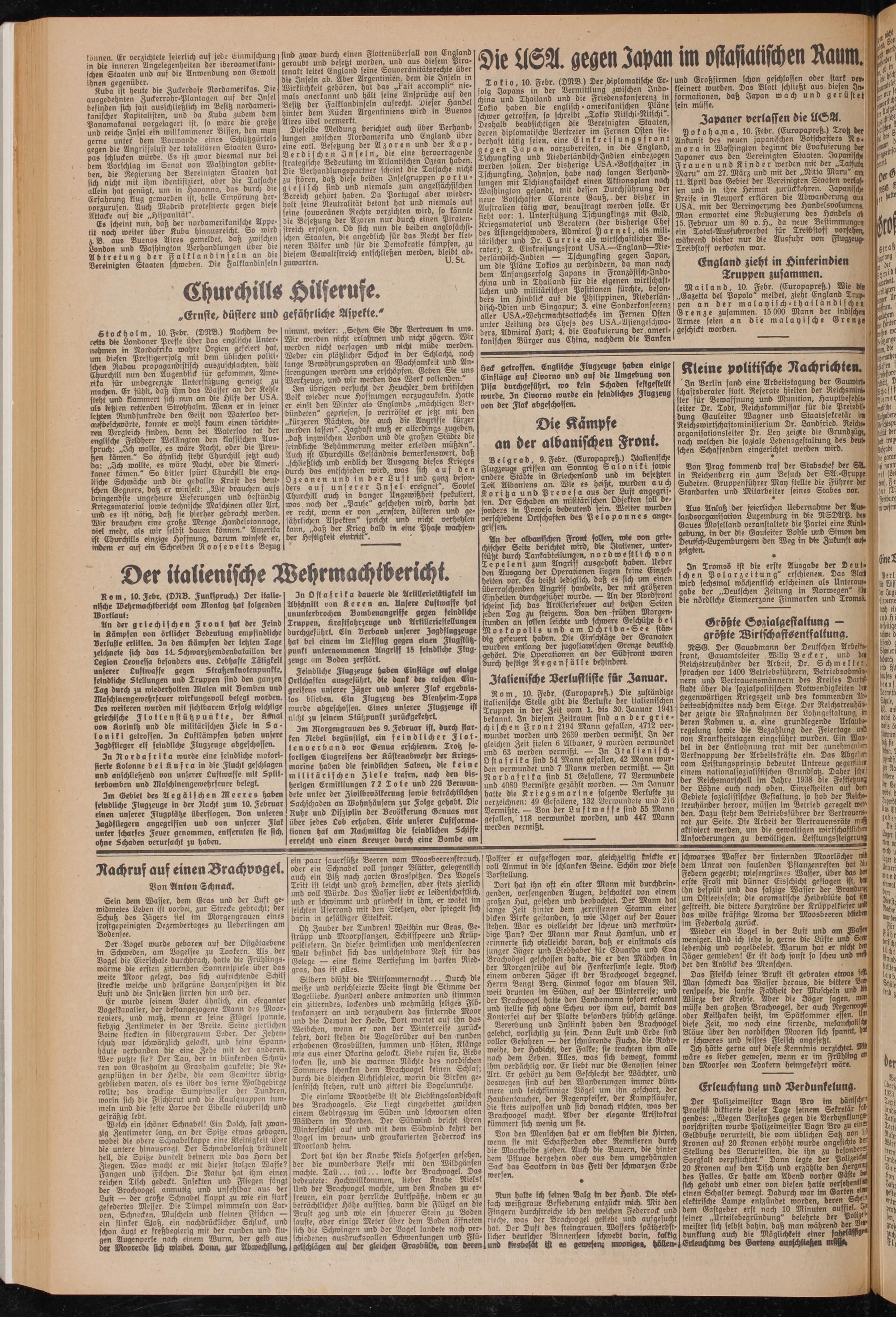 Rom, 10. Febr. (DNS. Funkspruch.) Der ilalie- nlsche Vehrmachibericht vom Montag hat folgenden Wortlaut:
