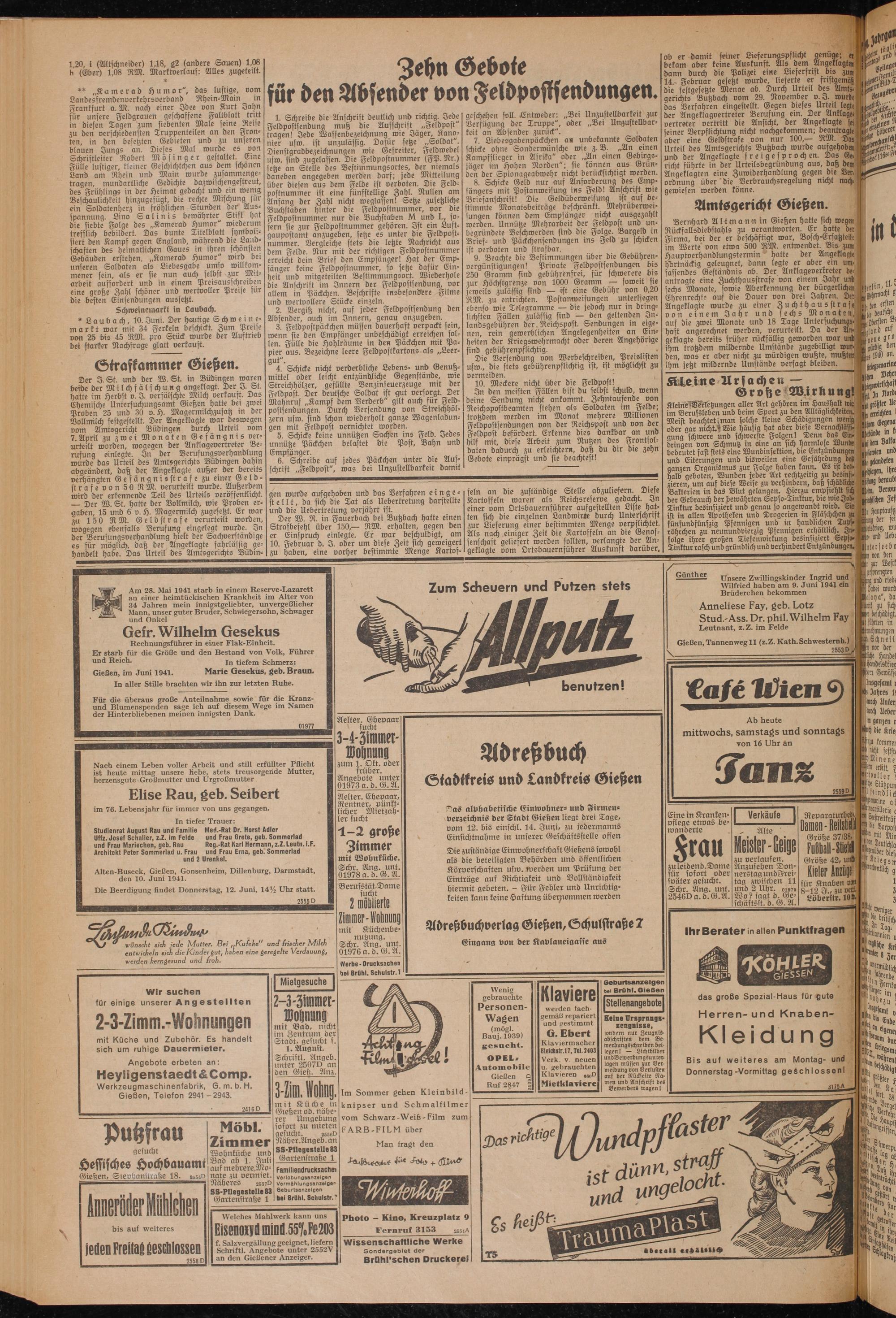 Alten-Buseck, Gießen, Gonsenheim, Dillenburg, Darmstadt, den 10. Juni 1941.