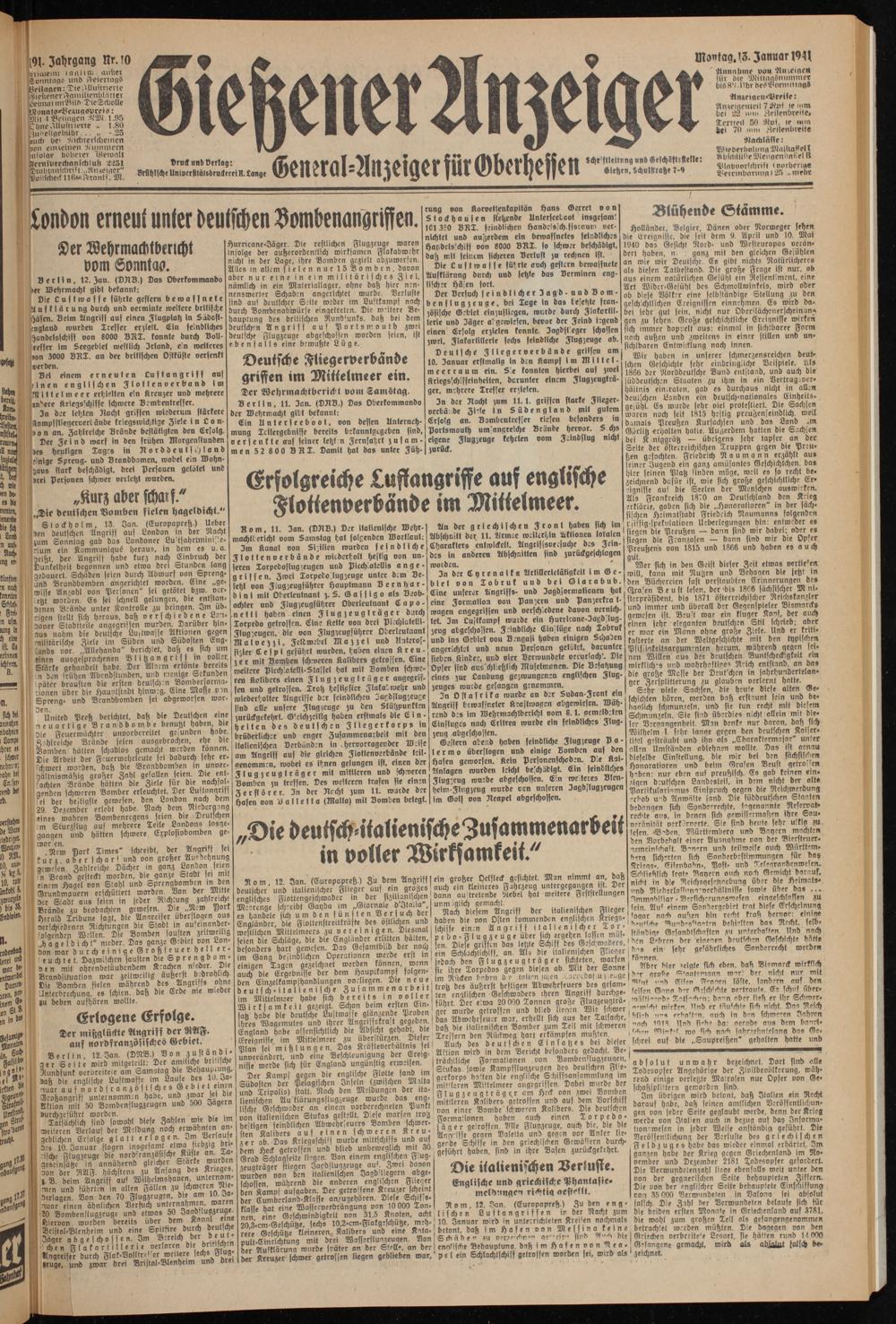 Deutsche Fliegerverbände griffen am 10. 3anuar erstmalig in den Kamps im Wittel meer raum ein. S e konnten hierbei auf zwei Kriegsschiffeinheiten, darunter einem Flugzeugträger. mehrere Treffer erzielen.