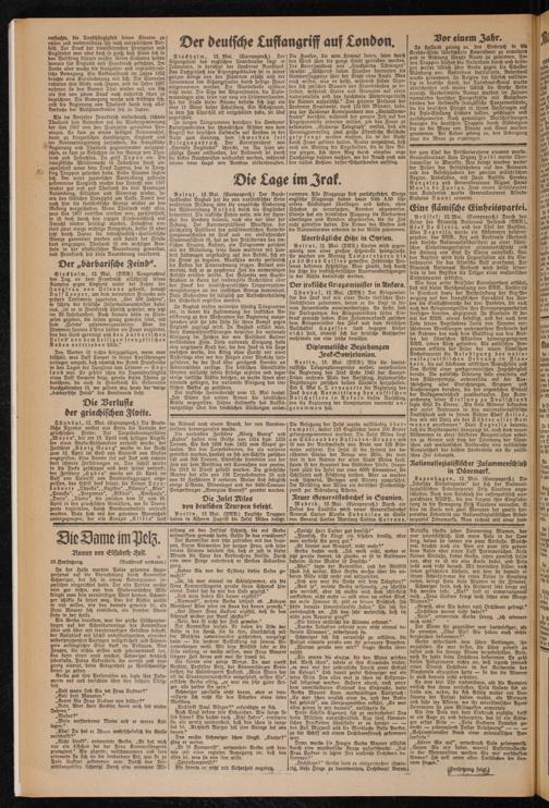 Der irakische Heeresbericht vom 12. Mai lautet: „Im Süden hat unsere Armee die feinblicken Kräfte angegriffen. Unsere Luftwaffe hat Aufklä- rungsflüge über den feindlichen Stellungen unter