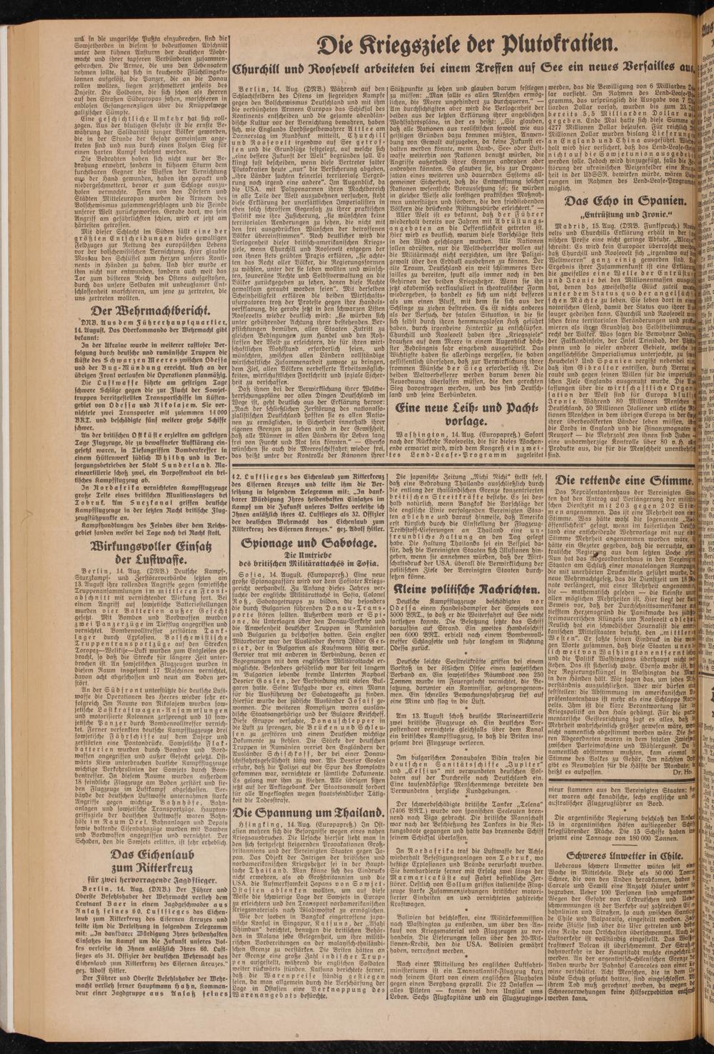 DRB. Aus dem Führerhauplquartler, 14. August. Das Oberkommando der Wehrmacht gibt bekannt: