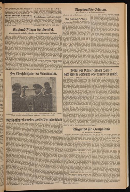 Der Reichsminister bes Innern unb der Reichs- Minister für Volksaufkläruna unb Propaganba geben bekannt: Die am Reichsgründungs- tag (18.Ianuar) unb am lag ber nationalen Erhebung (30. Januar) übliche allgemeine Beflaggung unterbleibt in diesem Jahr.