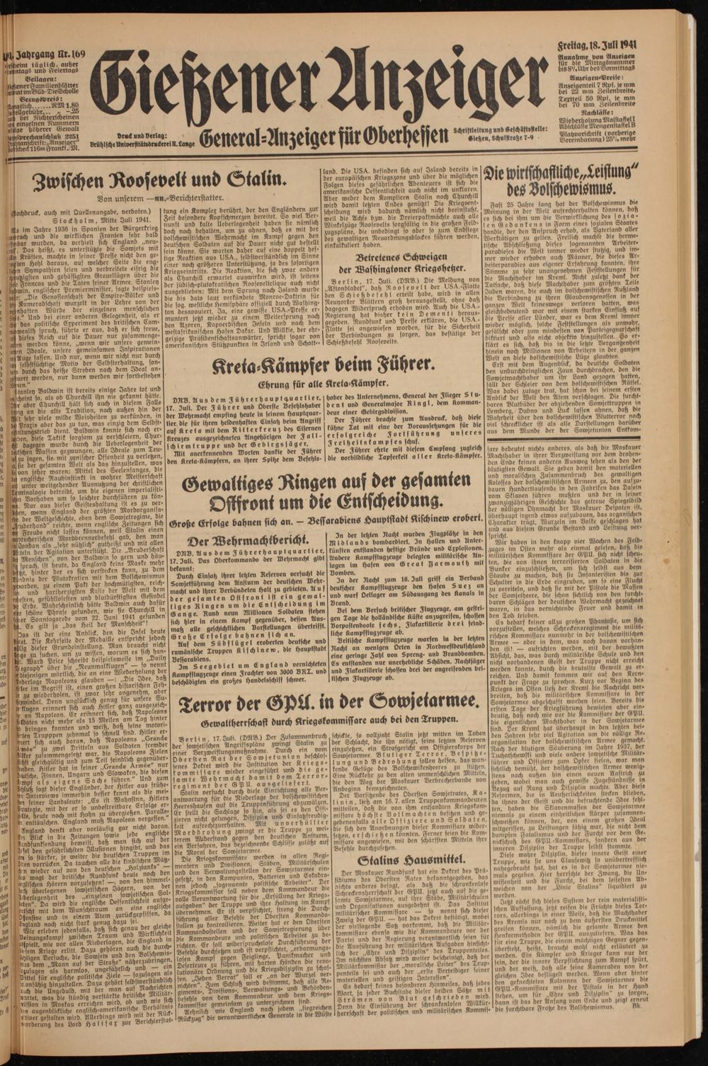 Vl- Jahrgang Ur. 169 lirfdieint täglich, außer .hotmtagS und ftetertagö