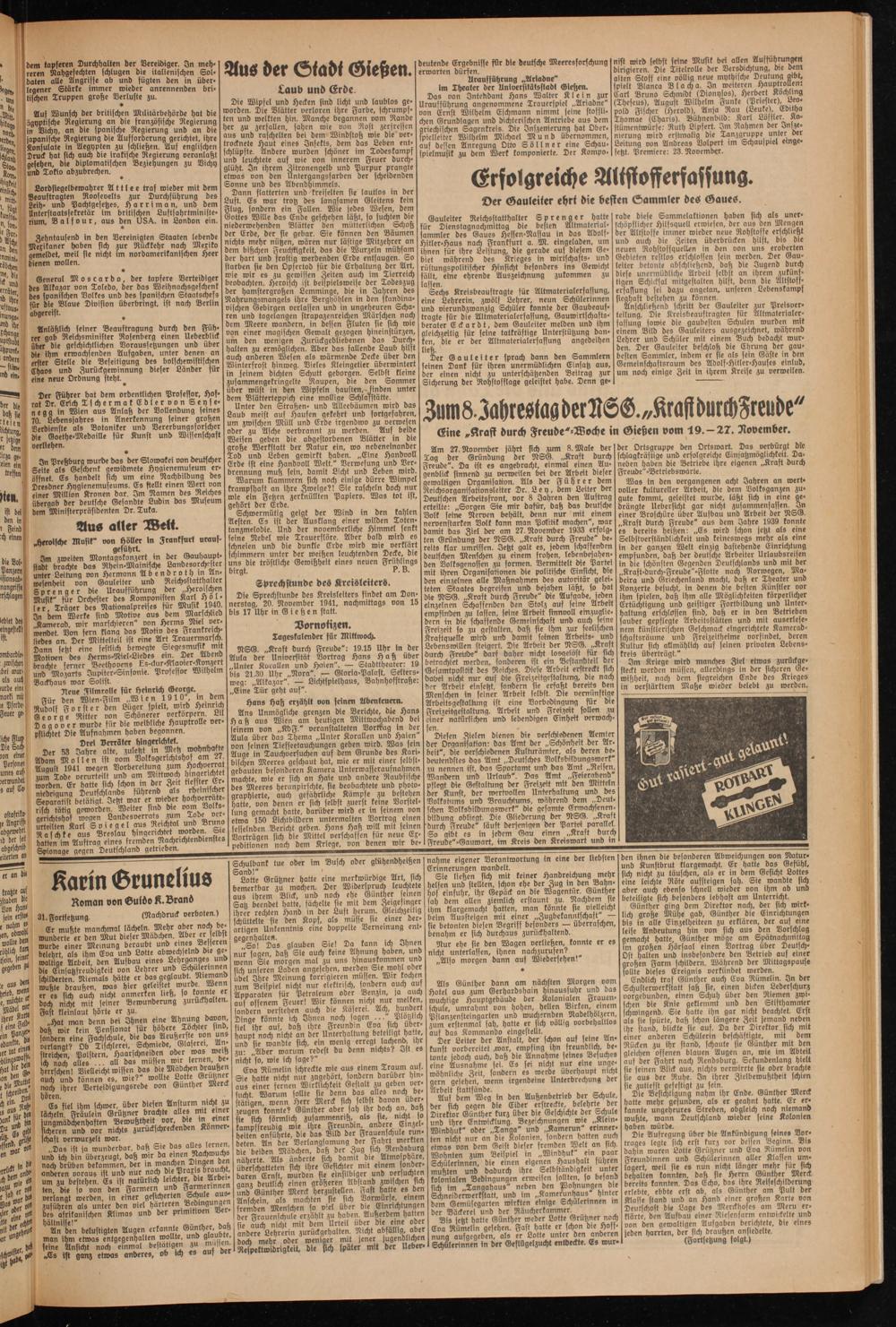Eine »Kraft durch Freude"-Woche in Gießen vom 19.-27. November.
