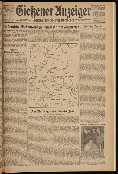 diosen Angriff unserer Luftwaffe, die schon in der Dämmerung aufsteigt, um ihre Gegner auf den feindlichen Flugplätzen aufzusuchen, aber auch die feindlichen Feldbefestigungen und Artilleriestellungen anzugreifen. Gleichzeitig setzt sich auf der Erde der ganze gewaltige Mechanismus in Bewegung, dessen Aufmarsch wir in den letzten Tagen spannungsvoll miterlebten. Der deutsche 2 n f a n - t e r i st, in vielen Schlachten bewährt, tritt wieder auf das Kampffeld. Deutsche Panzer rollen in dichten Geschwadern dem Feind entgegen. Noch in