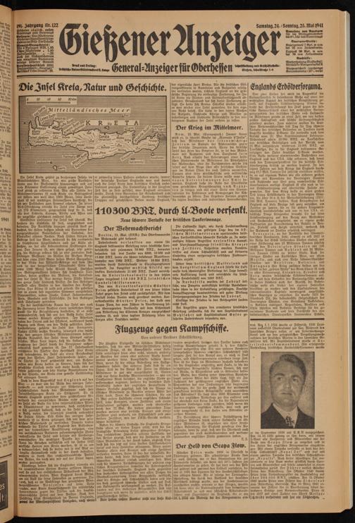 Die Luftwaffe fügte, wie durch Sondermeldung bekanntgegeben, am gestrigen Tage den im östlichen Mittelmeerraum operierenden britischen Seestreitkrästen schwerste Verluste zu. In mehrmaligen kühnen Angriffen versenkten Kampfund Sturzkampfflugzeuge feindliche Kreuzer und Zerstörer. Außerdem wurden Bombentreffer auf einem Schlachtschiff und auf kleineren Einheiten eines versprengten britischen Flottenver- bandes erzielt.