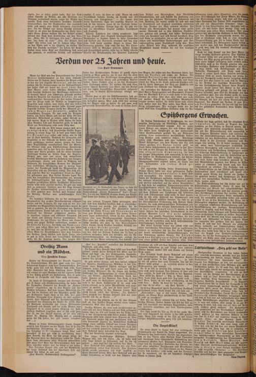 vor Augen, die nichts von den Granaten sahen, sondern nur Verdun und nichts als Verdun. Die Vorstadt B e llev i lle war erreicht und genommen, obwohl das Fort Belleville nod) feuerte, und dann führte der Wea in die Stadt, während draußen endlich die Forts schwiegen, der Weg zur Zitadelle und zum Denkmal der Schlacht von Verdun.