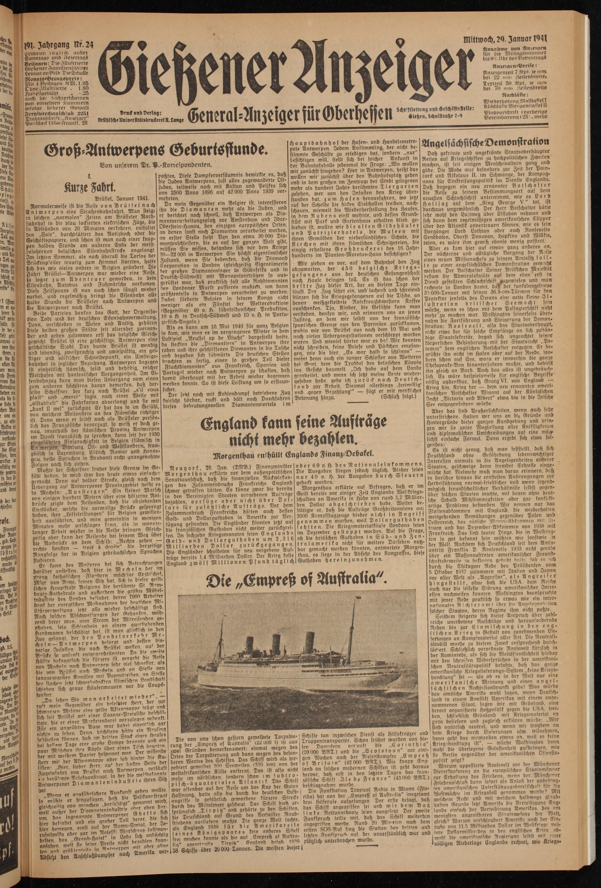 Crtes ber lorpebierung unb bannroegen bes be^o ^0^en aud) der Riesenbompfer „E m p r e h deren Wertes bes Schiffes. Das^Schiff wirb ls wr^ (42000 BRT ) Wie knapp Eng