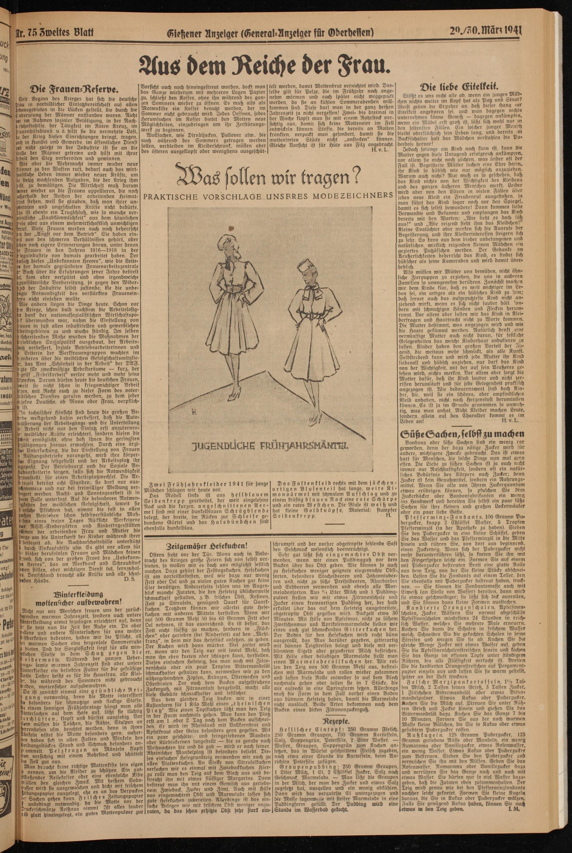 Zwei Frühjahrskleider 1941 für junge Mädchen schlagen wir heute vor.