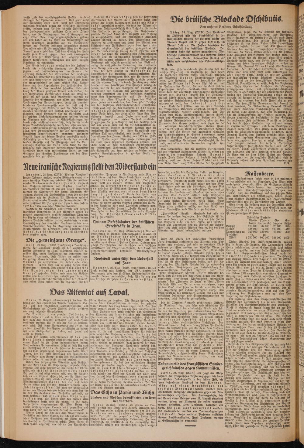 Nachdem die schwachen Streitkräfte der jungen iranischen Wehrmacht in den Kämpfen gegen die modern ausgerüsteten englisch-sowjetischen Truppen, die sich in einer erdrückenden Uebermacht befanden, schwere Verluste erlitten hatten, verkündete in einer Sondersitzung des iranischen Parlaments der neue Ministerpräsident, daß die Regierung, um weiteres Blutvergießen zu vermeiden, den Truppen den Befehl zur Einstellung des Widerstan- d e s gegeben habe.