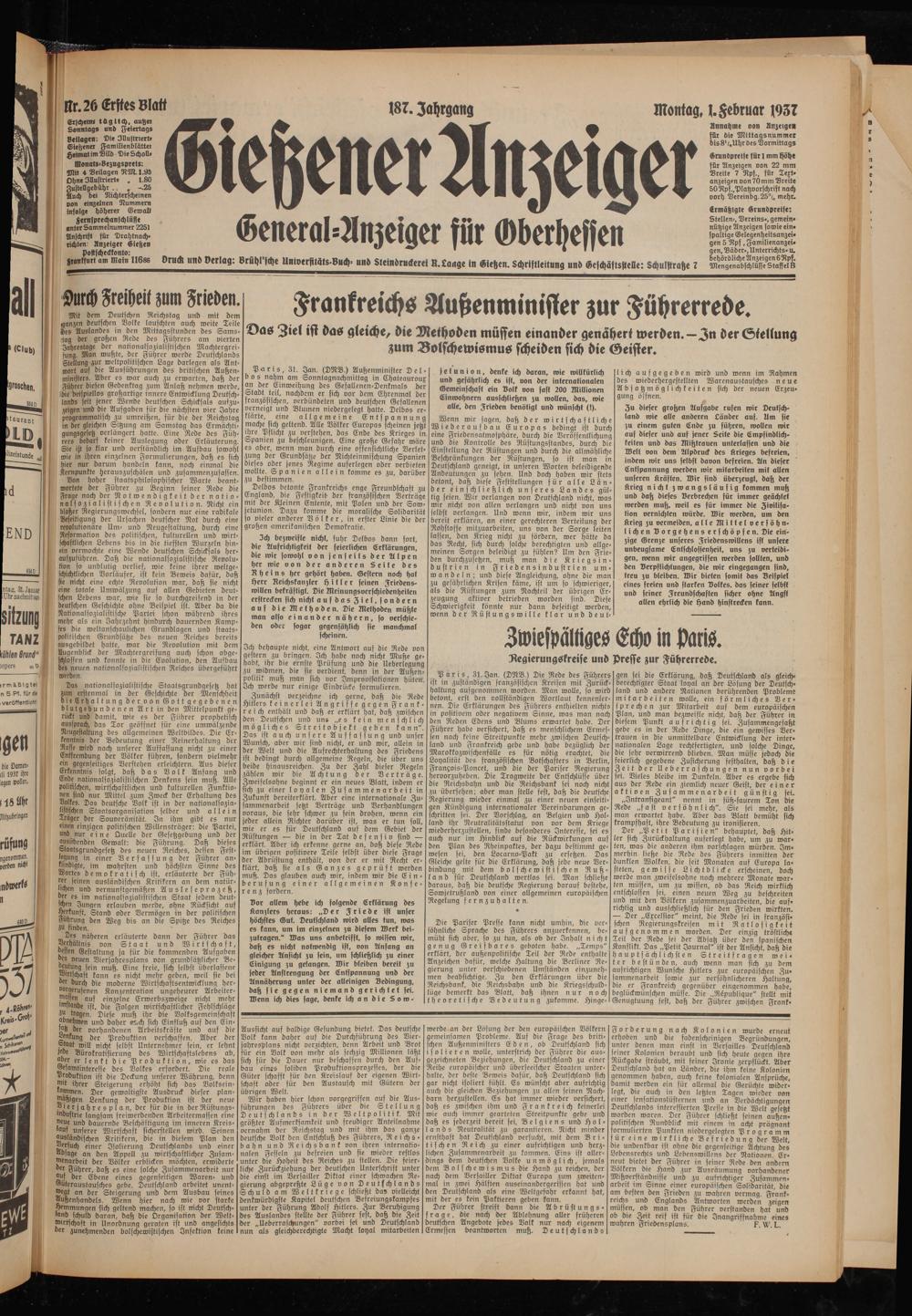 zrlmttur. am Main 1168« vn«K und Verlag: vrühl'sche UnioersttSlLvuch- und Steindruckerei H. Lange in Sieben. Schri,Heilung und Seschästzftelle: Schulftrahe r 5ZWA8KÄM