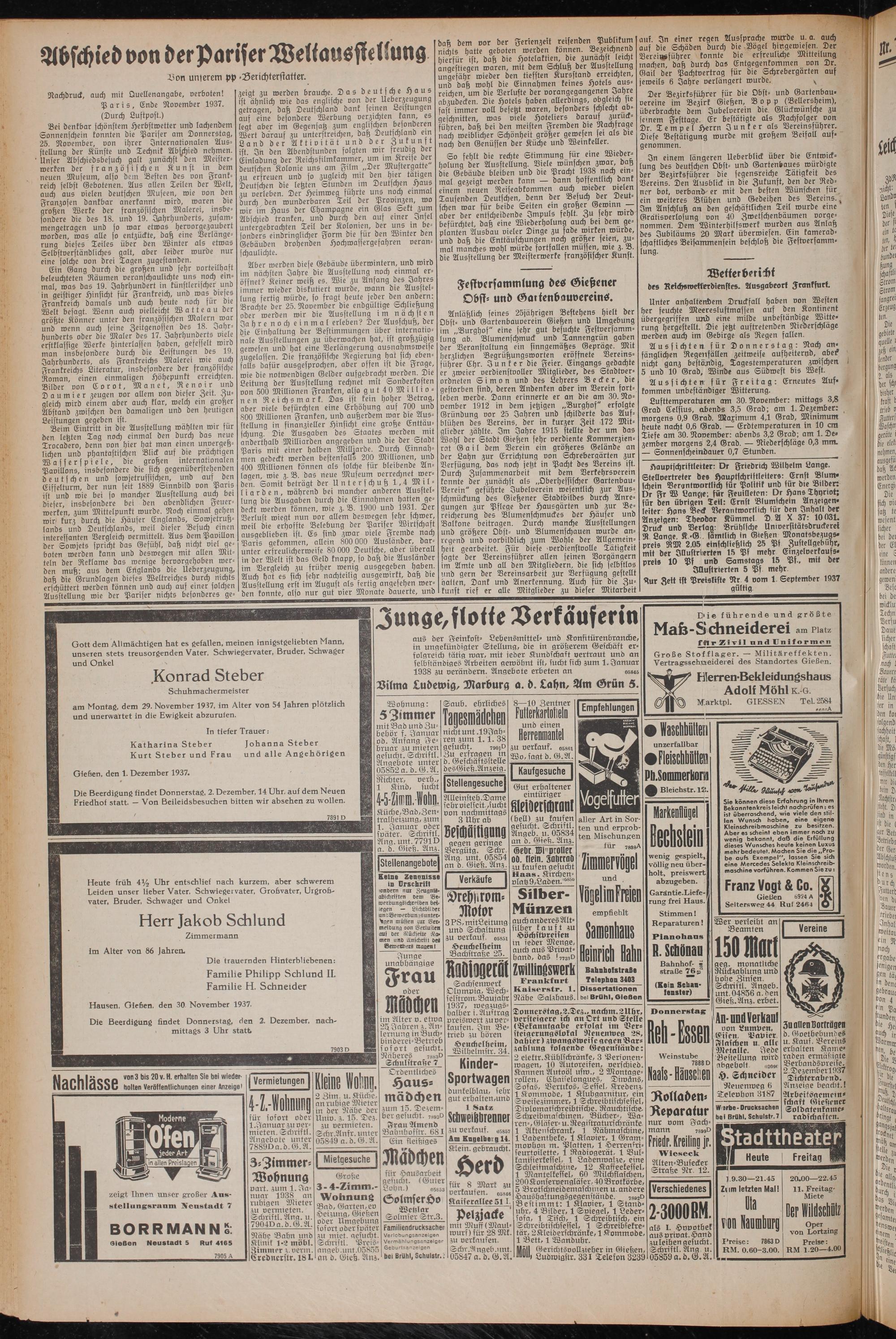 Gießen, den 1. Dezember 1937.