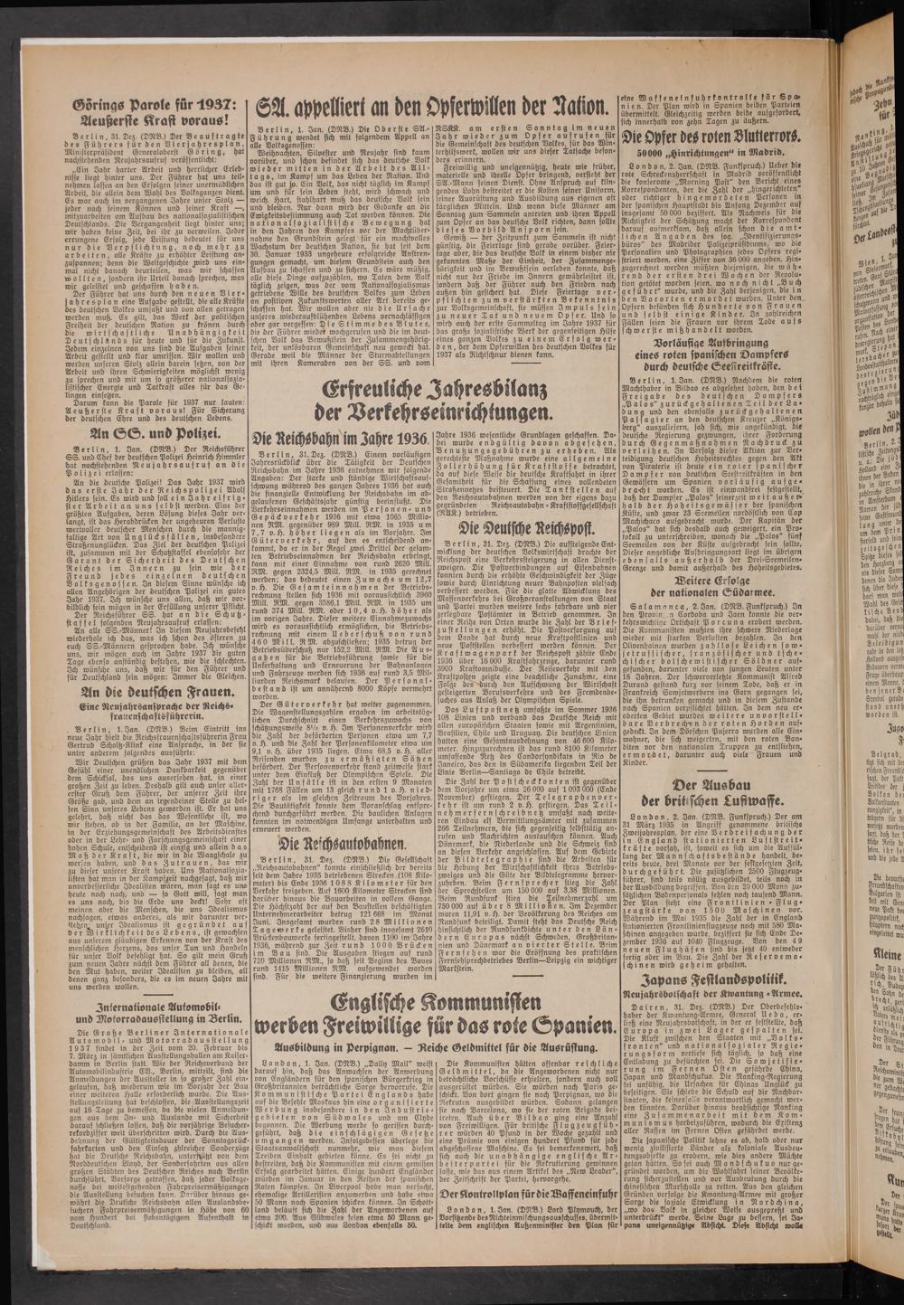 Darum kann die Parole für 1937 nur lauten: Aeußerste Kraft voraus! Für Sicherung der deutschen Ehre und des deutschen Lebens.