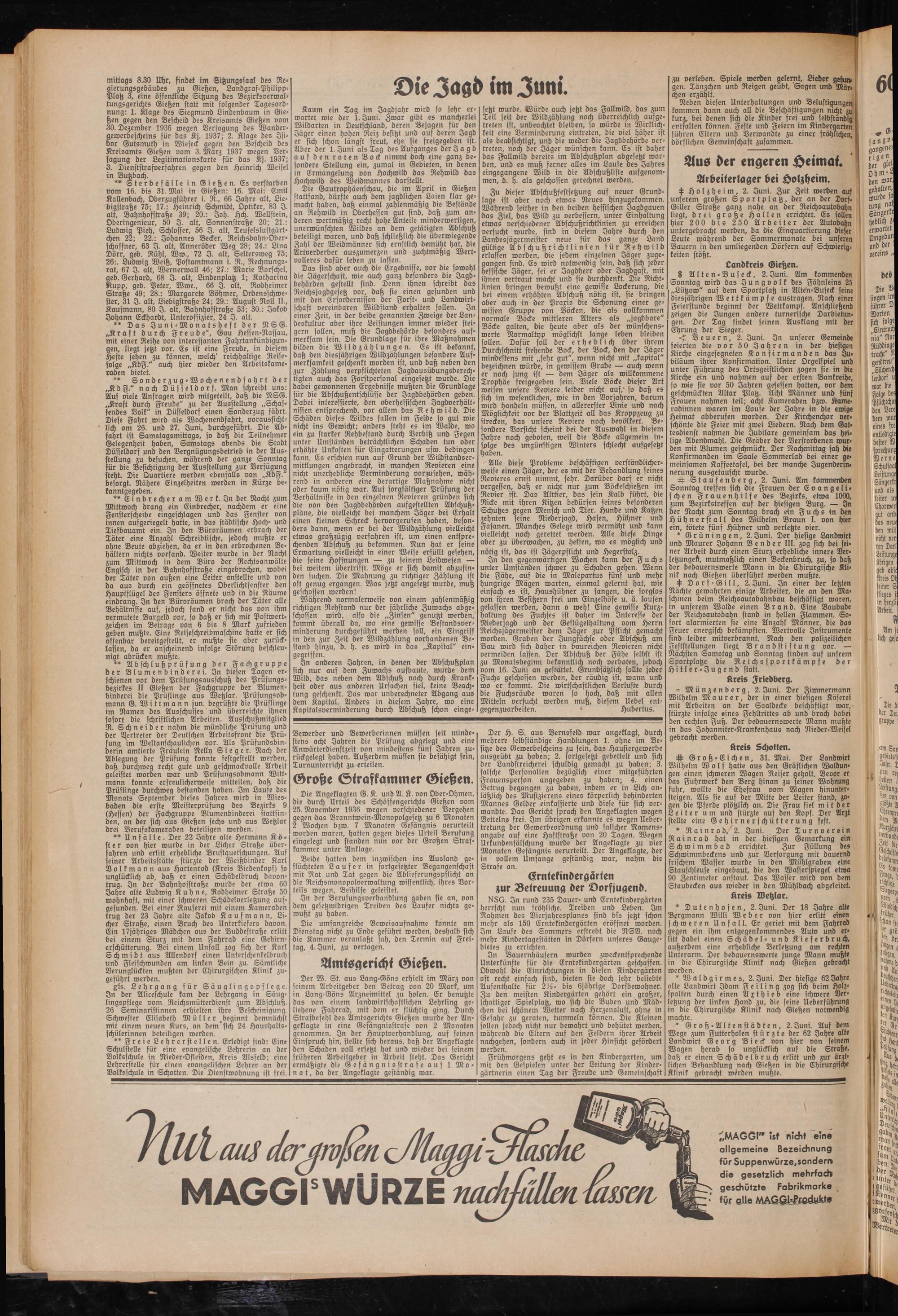 mittags 8.30 Uhr, findet im Sitzungssaal des Regierungsgebäudes Gießen, Landgraf-Philipp- Platz 3, eine öffentliche Sitzung des Bezirksoerwal- tungsgerichts Gießen statt mit folgender Tagesordnung: 1. Klage des Siegmund Lindenbaum in Gießen gegen den Bescheid des Kreisamts Gießen vom 30. Dezember 1936 wegen Versagung des Wandergewerbescheins für das Kj. 1937; 2. Klage des Isidor Gutsmuth in Wieseck gegen den Bescheid des Kreisamts Gießen vom 3. März 1937 wegen Versagung der Legittmationskarte für das Kj. 1937; 3. Dienststrafverfahren gegen den Heinrich Weisel in Butzbach.