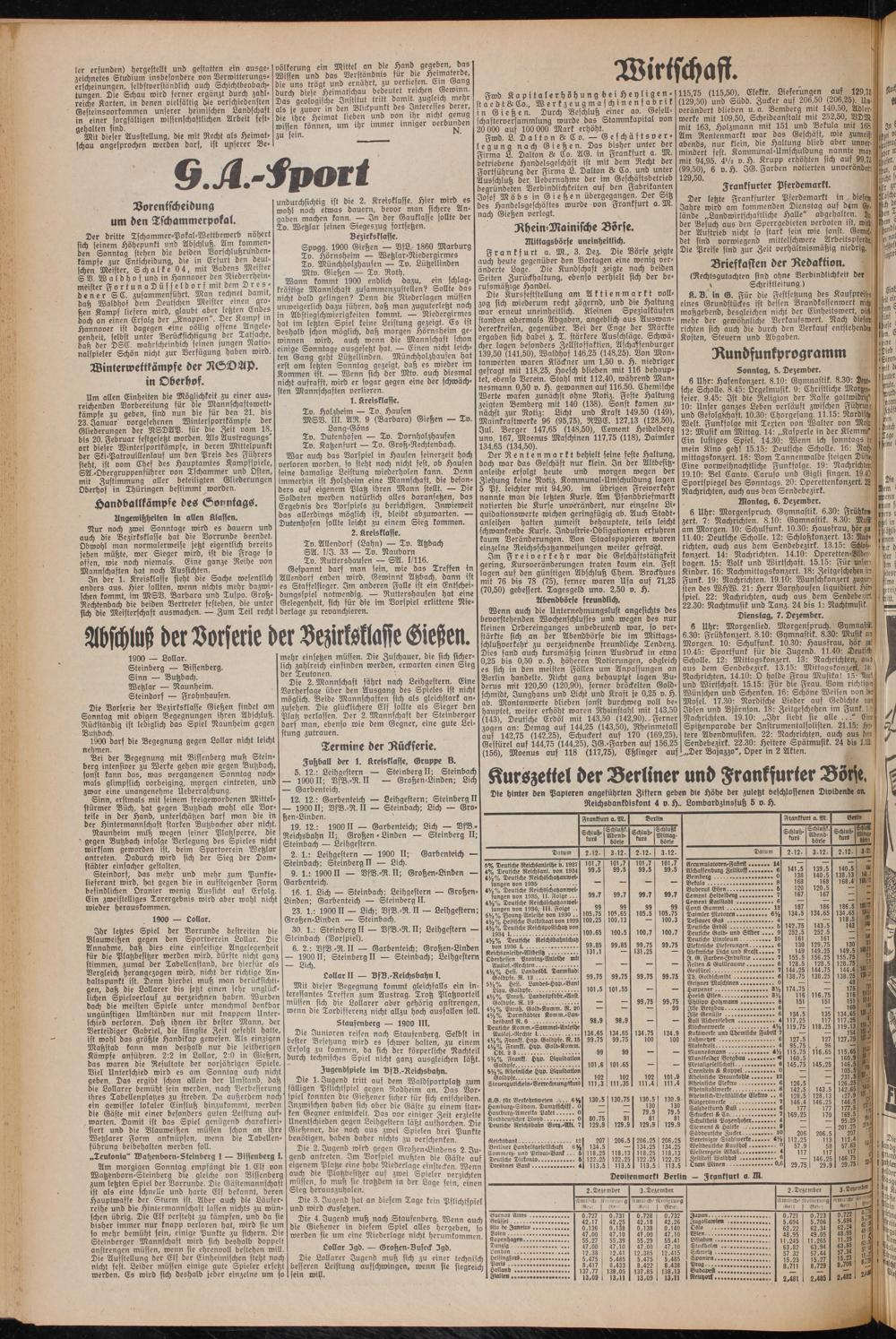 Z Kurszettel der Berliner und Frankfurter Börfe