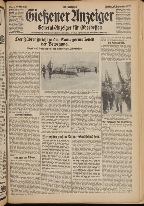 Druck und Verlag: Vrühlsche Univerfitatsdruckerei R. Lange in Gießen. Schristleitung und Geschäftsstelle: Zchulstraße 7