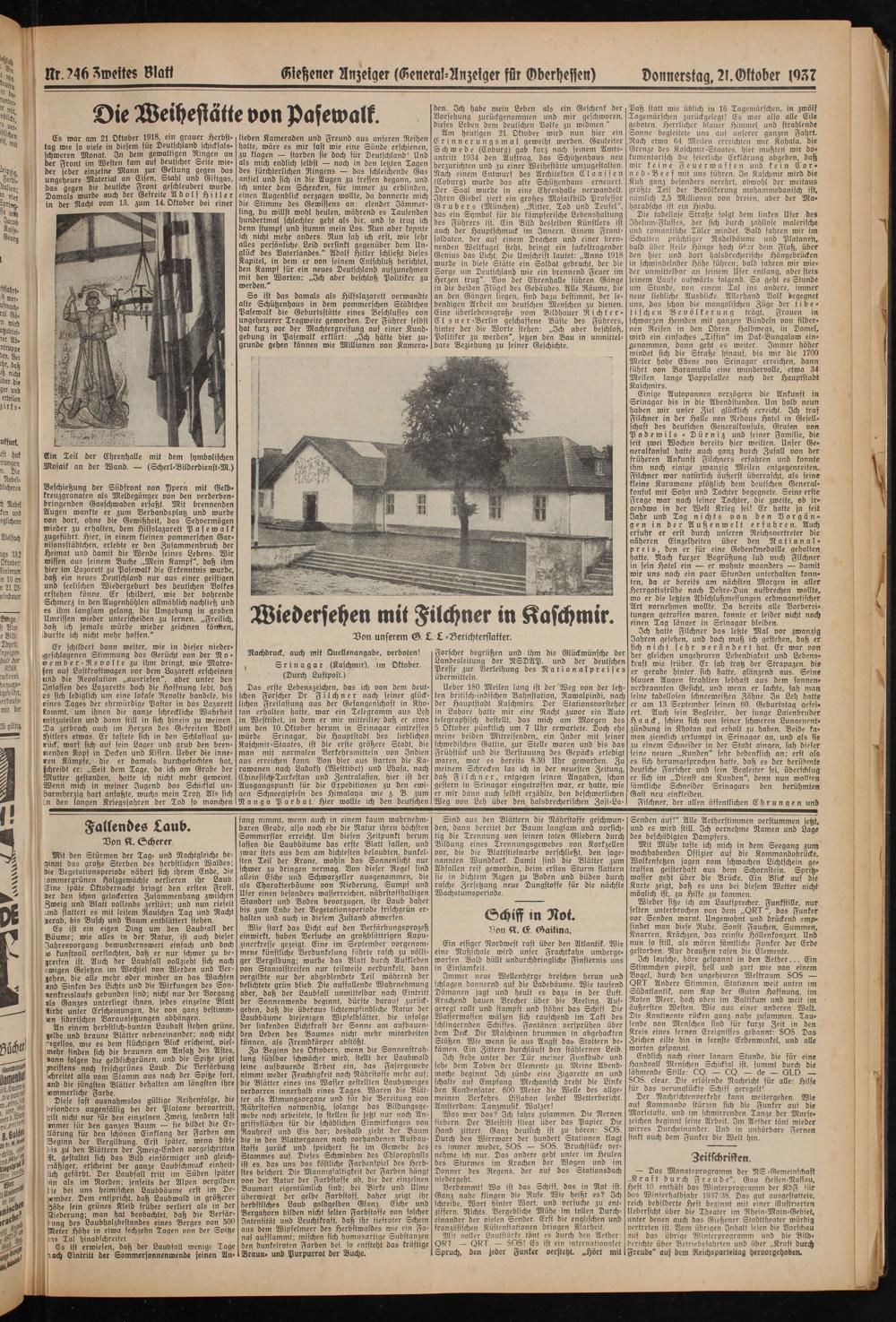 Kießener Anzeiger General-Anzeiger für Oberheffen) Donnerstag, 21. Oktober (Q57