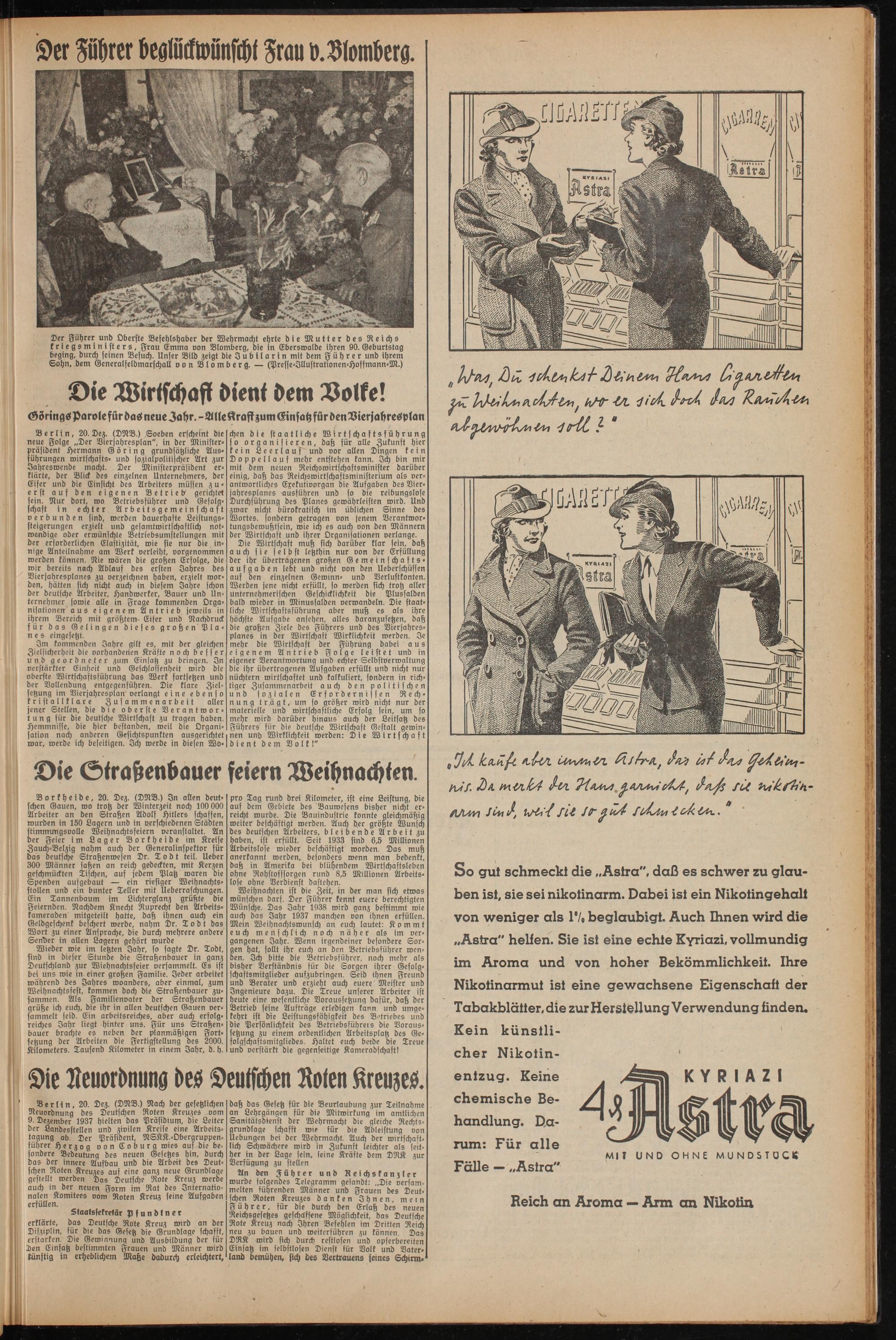 So gut schmeckt die „Astra", daß es schwer zu glauben ist, sie sei nikotinarm. Dabei ist ein Nikotingehalt von weniger als 1*1, beglaubigt. Auch Dinen wird die „Astra" helfen. Sie ist eine echte Kyriazi, vollmundig im Aroma und von hoher Bekömmlichkeit. Ihre Nikotinarmut ist eine gewachsene Eigenschaft der Tabakblätter, die zur Herstellung Verwendung finden. Kein künstli
