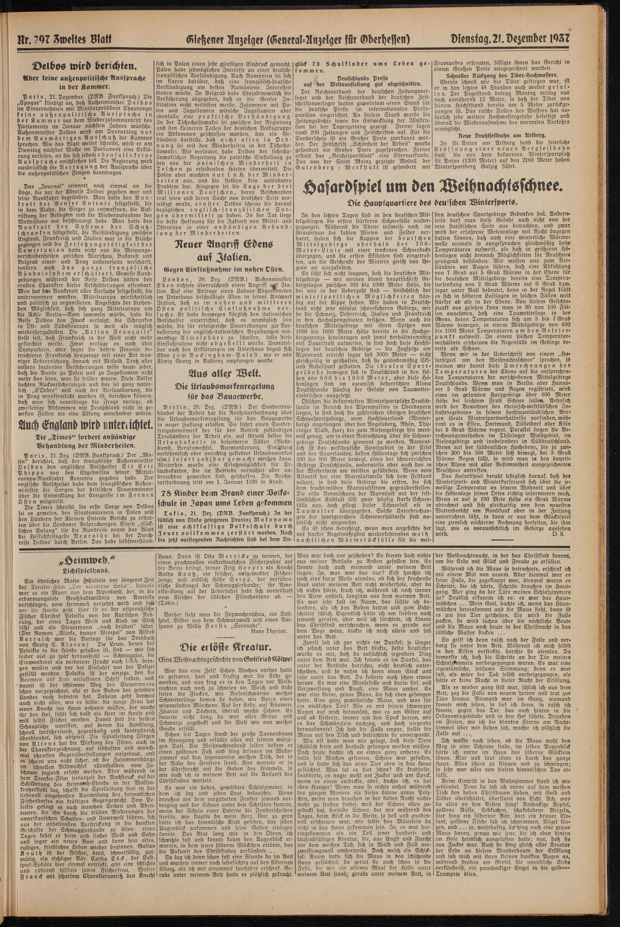 Dienstag. 2k. Dezember 1957
