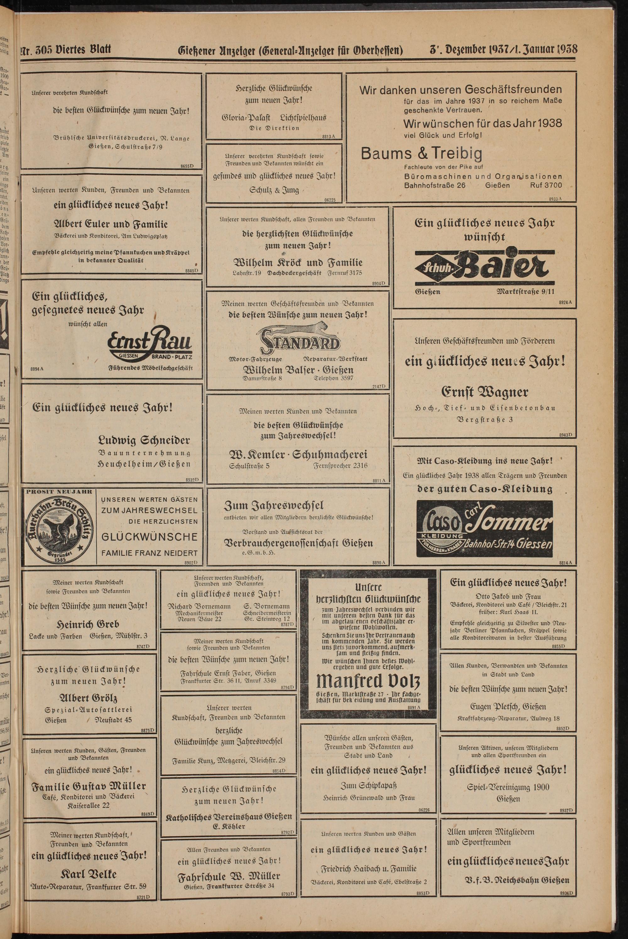 Wir danken unseren Geschäftsfreunden für das im Jahre 1937 in so reichem Maße geschenkte Vertrauen.