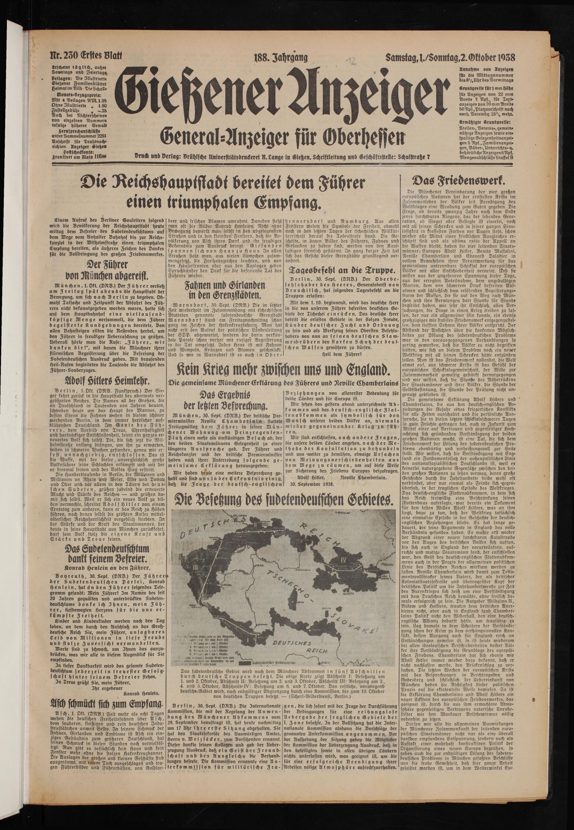 Mil dem 1.10. beginnend, wird das deutsche Heer in die von unserem Führer befreiten deutschen Gebiete der Tschechei e i n r ü ck e n. Das deutsche Heer betritt die erlösten Gebiete in der stolzen Freude, Künder deutscher Zucht und Ordnung zu sein und als Werkzeug seines Obersten Befehlshabers von nun an feinen deutschen Stamme sbrüdern den starken Schuh der deutschen Waffen gewähren zu dürfen.